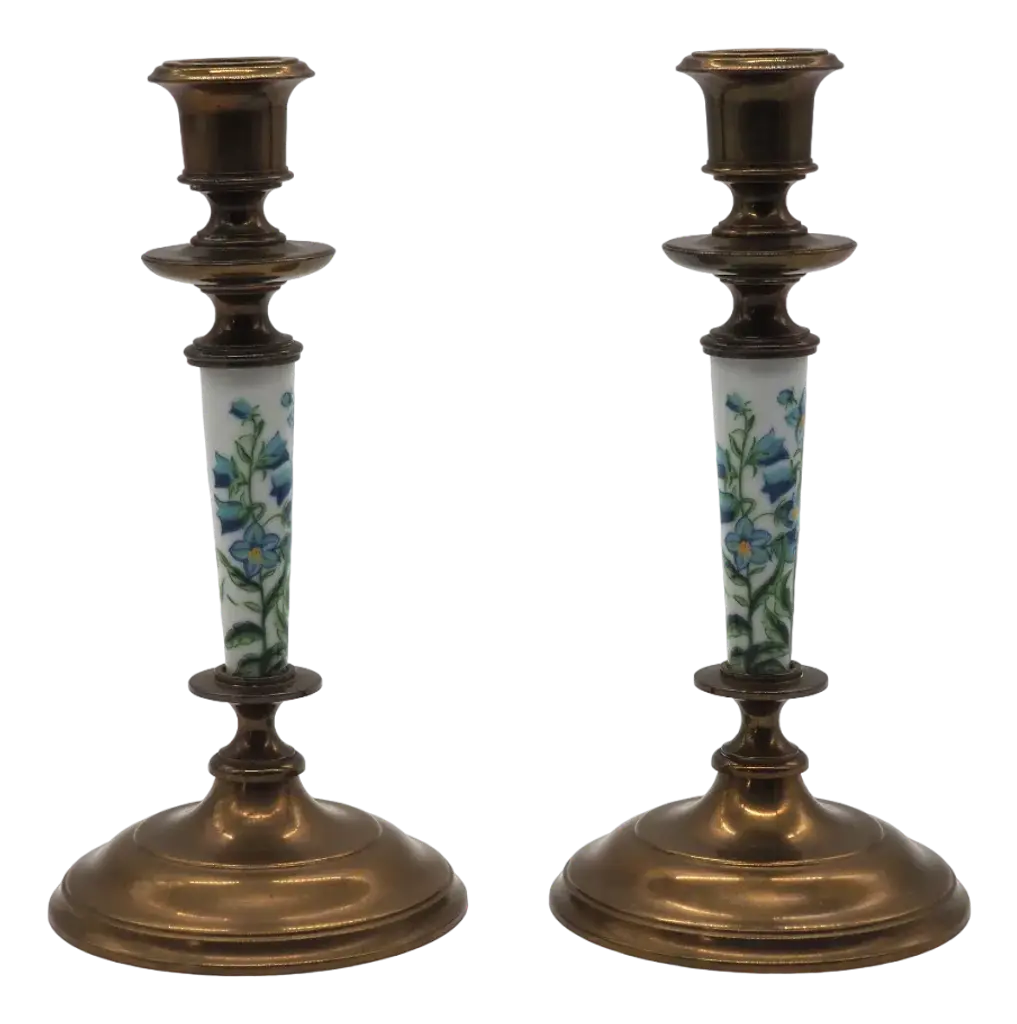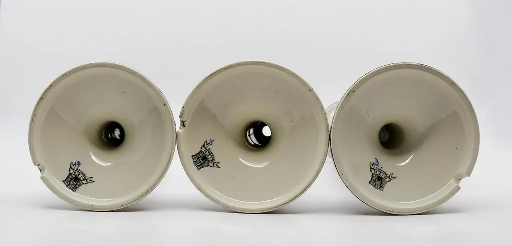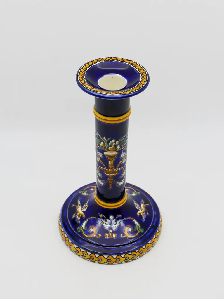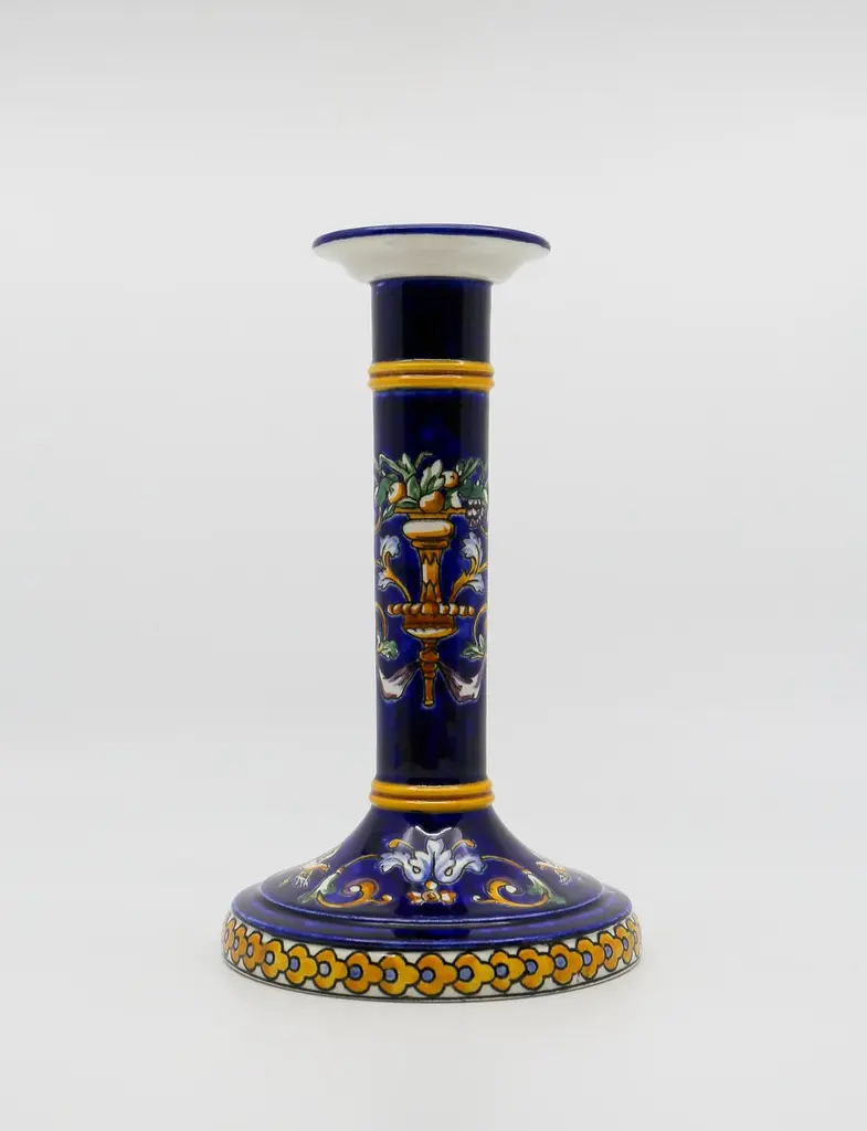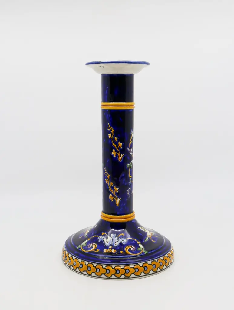 Three very beautiful Gien Renaissance model candlesticks in its night blue version. The base is cut out for a wire passage. Probably an adjustment to install a lamp. Apart from this small cut, no defect.