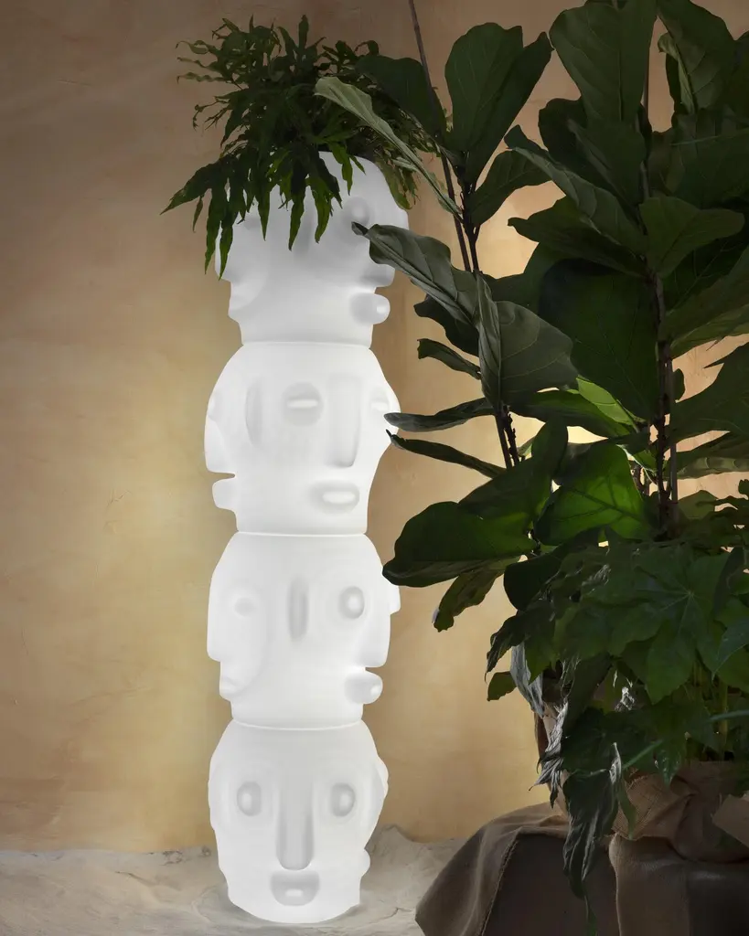 Threebù 3 Flame Red Totem by MarcantonioDimensions: D 45 x W 45 x H 135 cm.Materials: Polyethylene and metal.Weight: 12,5 kg.Available in different color options. Prices may vary. This product is suitable for indoor and outdoor use. Available in a standard or lacquered version. Available in polyethylene or biobased polyethylene of vegetal origin, obtained from sugar cane. Please contact us.Our stories happen in places precious to us. SLIDE was born from the desire to produce furniture and light to create the perfect atmosphere that highlights emotions.Design is inspiration, surprise, joy. It's the amazement of seeing something unique for the first time. It's creating spaces to feel good and live surrounded by beauty. It means giving a personal imprint to indoor and outdoor spaces. It means choosing your ideal element that is the perfect setting for emotions and experiences, which become indelible memories. The founder Giò Colonna Romano knows this well, combining his fervent imagination with thirty years of know-how in the processing of plastic resins, giving birth to SLIDE in 2002. The first note of amazement is the luminous furniture, which immediately became a must have in the world of events. Since 2015, his son Marco Colonna Romano has taken over the reins of the company, with the same desire to grow and innovate as his father. Thanks to a new panache and the team of young people it surrounds itself with, SLIDE becomes a beloved company for outdoor furniture: new shapes, materials and tactile textures have won the hearts and ideas of architects and interior designers around the world. SLIDE has thus created complete collections and furnishings, with new shapes, whose lines arise from collaboration with internationally renowned designers of the caliber of Alessandro Mendini, Paola Navone, Stefano Giovannoni, Fabio Novembre, Marcel Wanders, Karim Rashid, Marc Sadler, Francesco Favaretto and Marcantonio.New materials were chosen and inserted, initially soft and rigid polyurethane, and then comfortable cushions, waterproof fabrics, tactile textures ideal for completing the polyethylene furnishings with taste and class. But SLIDE does not forget its first essence, lighting: in recent years it has developed a line of much more technical lamps for large areas, essential in shape but with great visual impact. For the first time, Slide has managed to give an artisanal twist to an industrial process: to meet the increasingly high demands of living, the production creates non-replicable shades, in which every small imperfection enhances the industrial process and makes each piece unique . Because Slide's strength has always been the careful reading of the market, the creation of something that didn't exist and which then became necessary: here Slide continues its production in Buccinasco, on the outskirts of Milan, but its name and its products reach more than 130 countries around the world.
