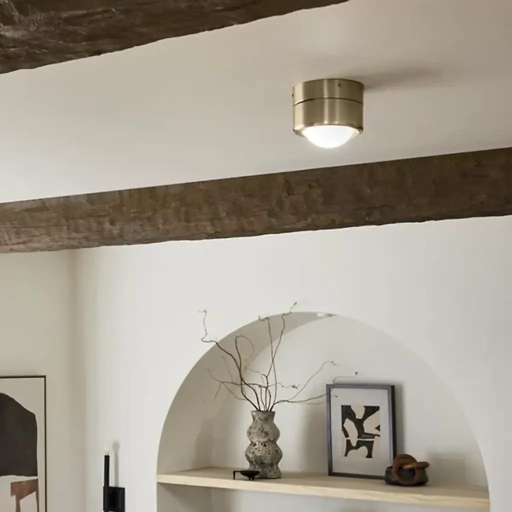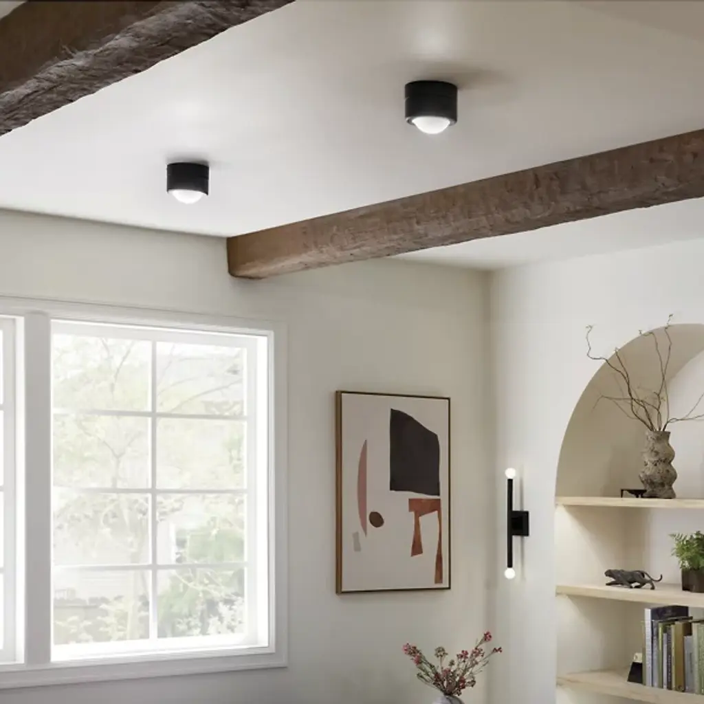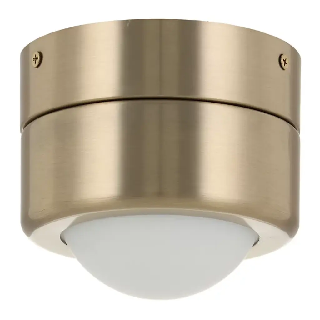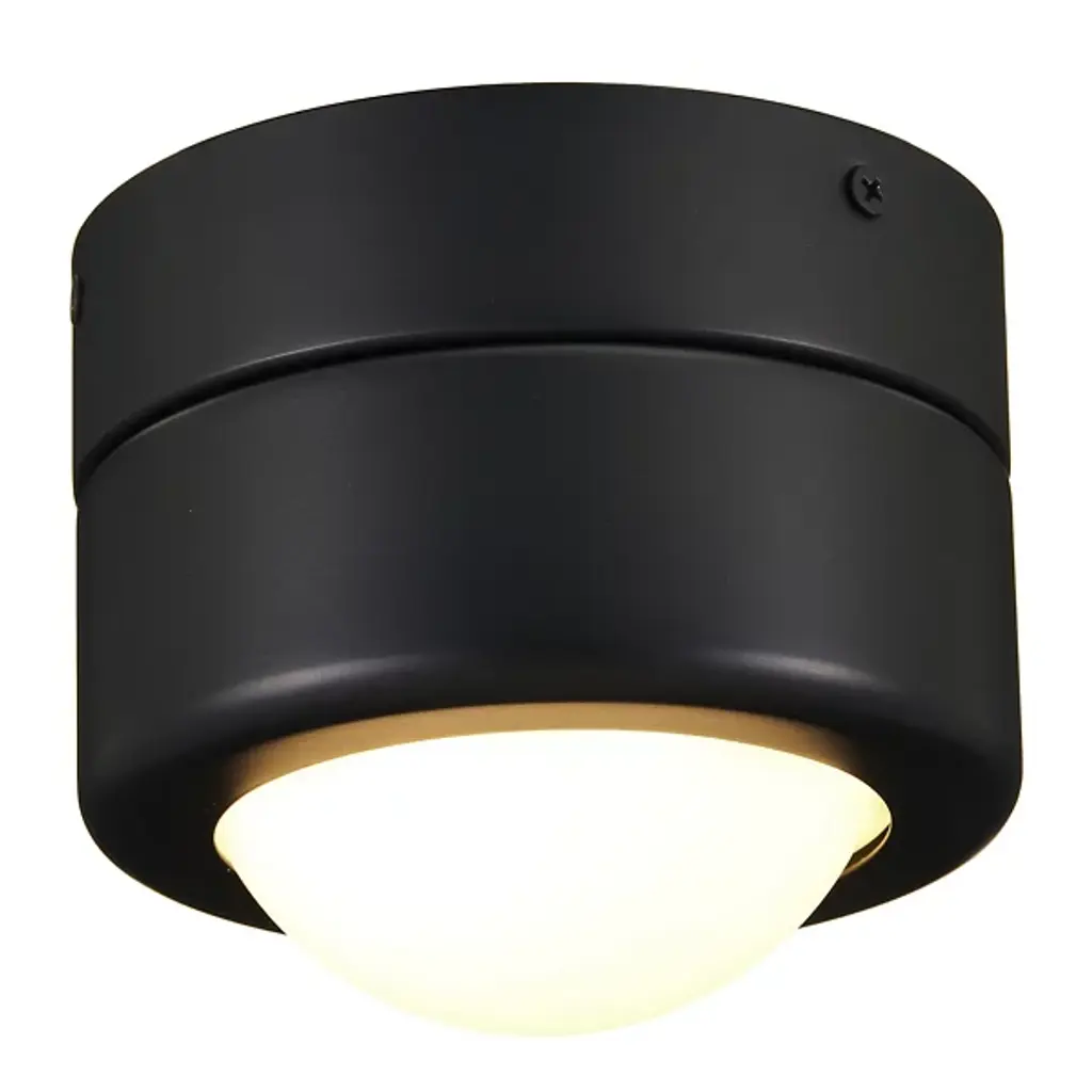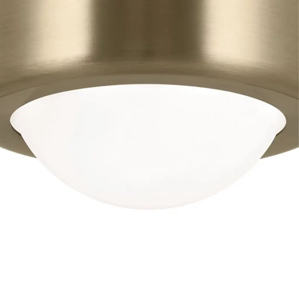 Small, stylish, and effortlessly expressive, the Tibbi LED Flushmount from Kichler presents a delightful blend of Contemporary simplicity and Mid-Century Modern refinement. A rounded canopy and body in strong steel enclose energy-friendly LED lamping inside a dome shade of satin etched, cased opal glass that emerges from a circular metal collar, obscuring glare to the sides and casting a welcome warmth to the sides.