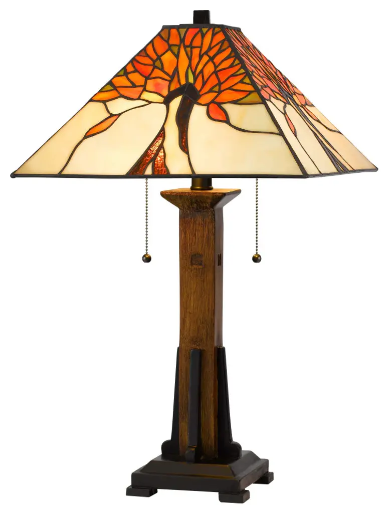 60W x 2 Tiffany table lamp with pull chain switch and metal and resin lamp body