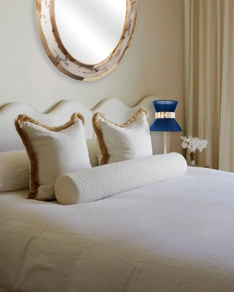 TIFFANY The first one, Audrey inspired the iconicIntroducing Sabrina's breathtaking collection of Tiffany lamps.Year after year Sabrina Landini perpetuates its exceptional expertise, offering much more than a lamp – a touch of originality.Nearly 25 years ago, the first Tiffany lamps were crafted in Sabrina Landini' s workshop, just a stone's throw away from the Milano Navigli. At the House we believe in once-in-a-lifetime Tiffany, the iconic.With its delicate interplay of materials and lines, Tiffany celebrates the art of dazzling and brightening the lives of those you love.The eye-catching glass belt, secretly performed in our Atelier, the variety of silk’ colors and the smooth brass finish, confer uniqueness and natural charme.The perfect balance of allure and sophistication to enrich all kinds of interiors CE certified and Electrified : US, EU, UK, dimmableAvailable in the lampshade diameter : 23, 30, 40, 60, 80 cm