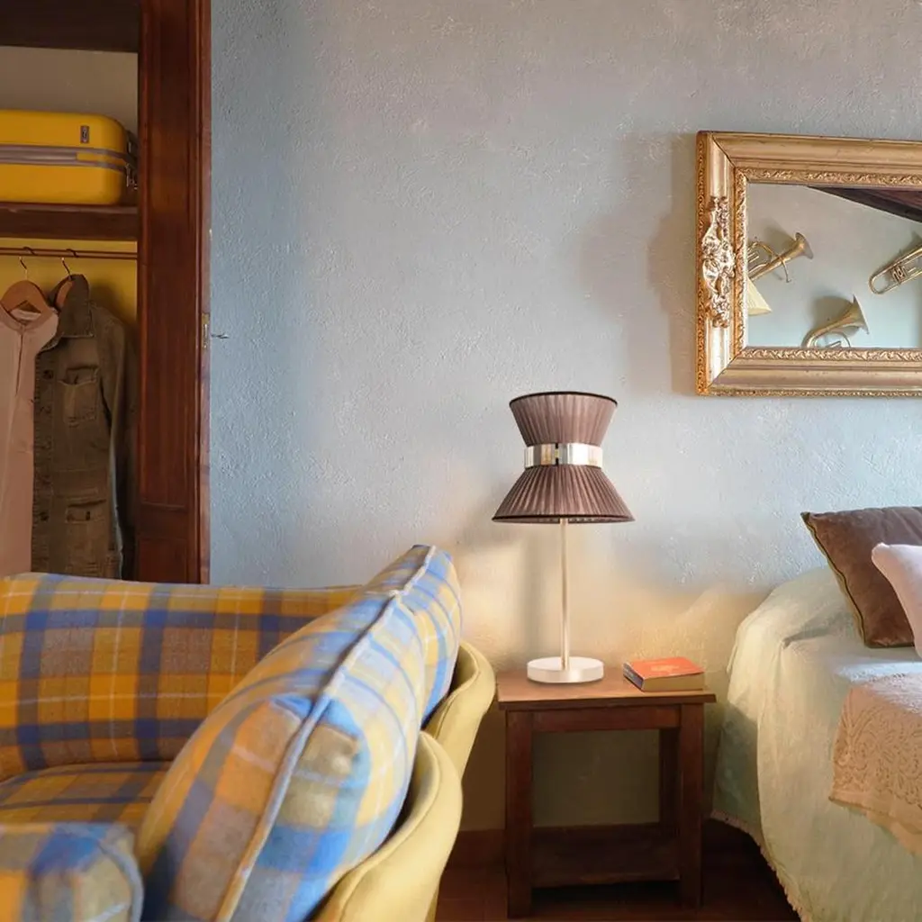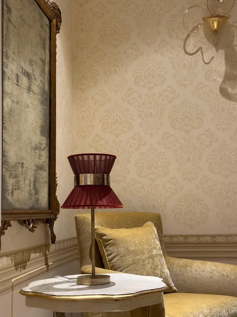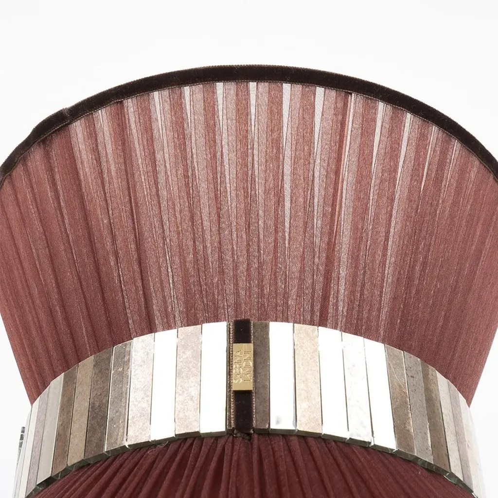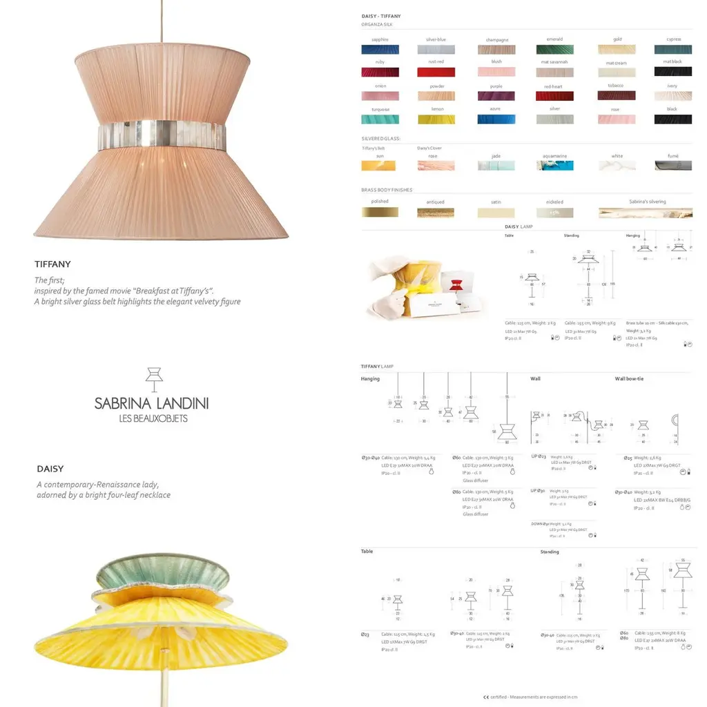 TIFFANY The first one, Audrey inspired the iconicIntroducing Sabrina's breathtaking collection of Tiffany lamps.Year after year Sabrina Landini perpetuates its exceptional expertise, offering much more than a lamp – a touch of originality.Nearly 25 years ago, the first Tiffany lamps were crafted in Sabrina Landini' s workshop, just a stone's throw away from the Milano Navigli. At the House we believe in once-in-a-lifetime Tiffany, the iconic.With its delicate interplay of materials and lines, Tiffany celebrates the art of dazzling and brightening the lives of those you love.The eye-catching glass belt, secretly performed in our Atelier, the variety of silk’ colors and the smooth brass finish, confer uniqueness and natural charme.The perfect balance of allure and sophistication to enrich all kinds of interiors.CE certified and Electrified : US, EU, UK, dimmableAvailable in the lampshade diameter : 23, 30, 40, 60, 80 cm