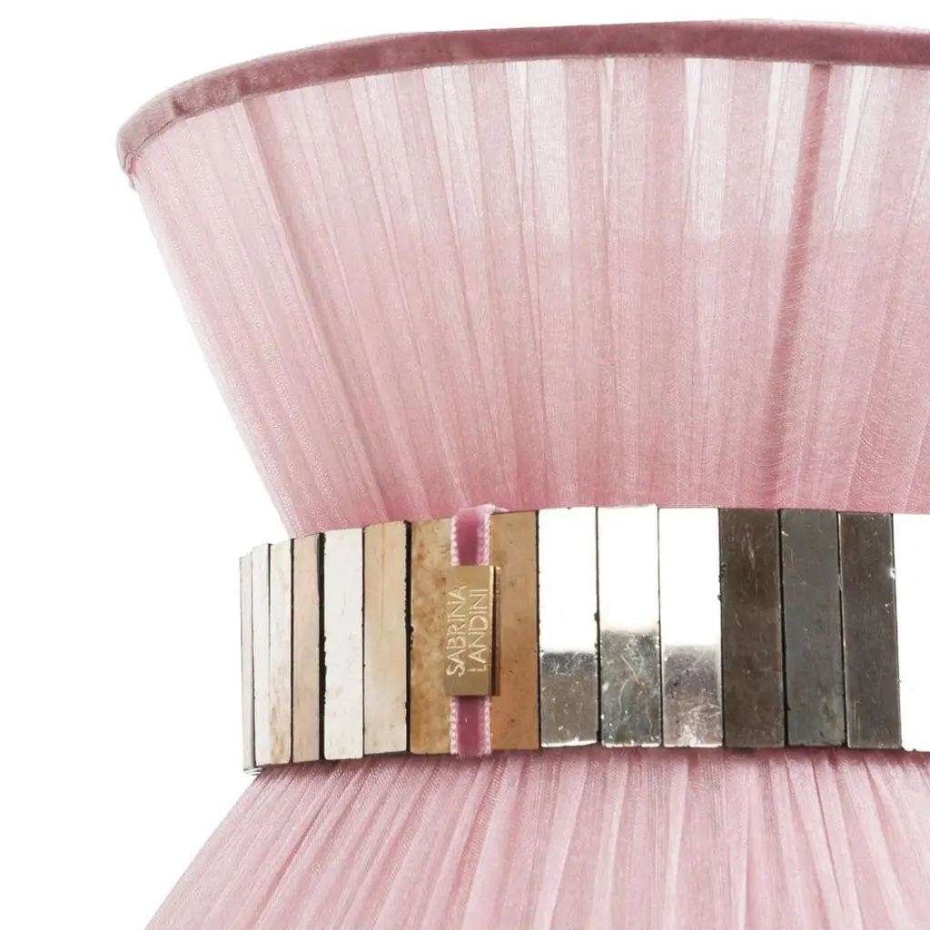 TIFFANY The first one, Audrey inspired the iconicIntroducing Sabrina's breathtaking collection of Tiffany lamps.Year after year Sabrina Landini perpetuates its exceptional expertise, offering much more than a lamp – a touch of originality.Nearly 25 years ago, the first Tiffany lamps were crafted in Sabrina Landini' s workshop, just a stone's throw away from the Milano Navigli. At the House we believe in once-in-a-lifetime Tiffany, the iconic.With its delicate interplay of materials and lines, Tiffany celebrates the art of dazzling and brightening the lives of those you love.The eye-catching glass belt, secretly performed in our Atelier, the variety of silk’ colors and the smooth brass finish, confer uniqueness and natural charme.The perfect balance of allure and sophistication to enrich all kinds of interiors.CE certified and Electrified : US, EU, UK, dimmableAvailable in the lampshade diameter : 23, 30, 40, 60, 80 cm