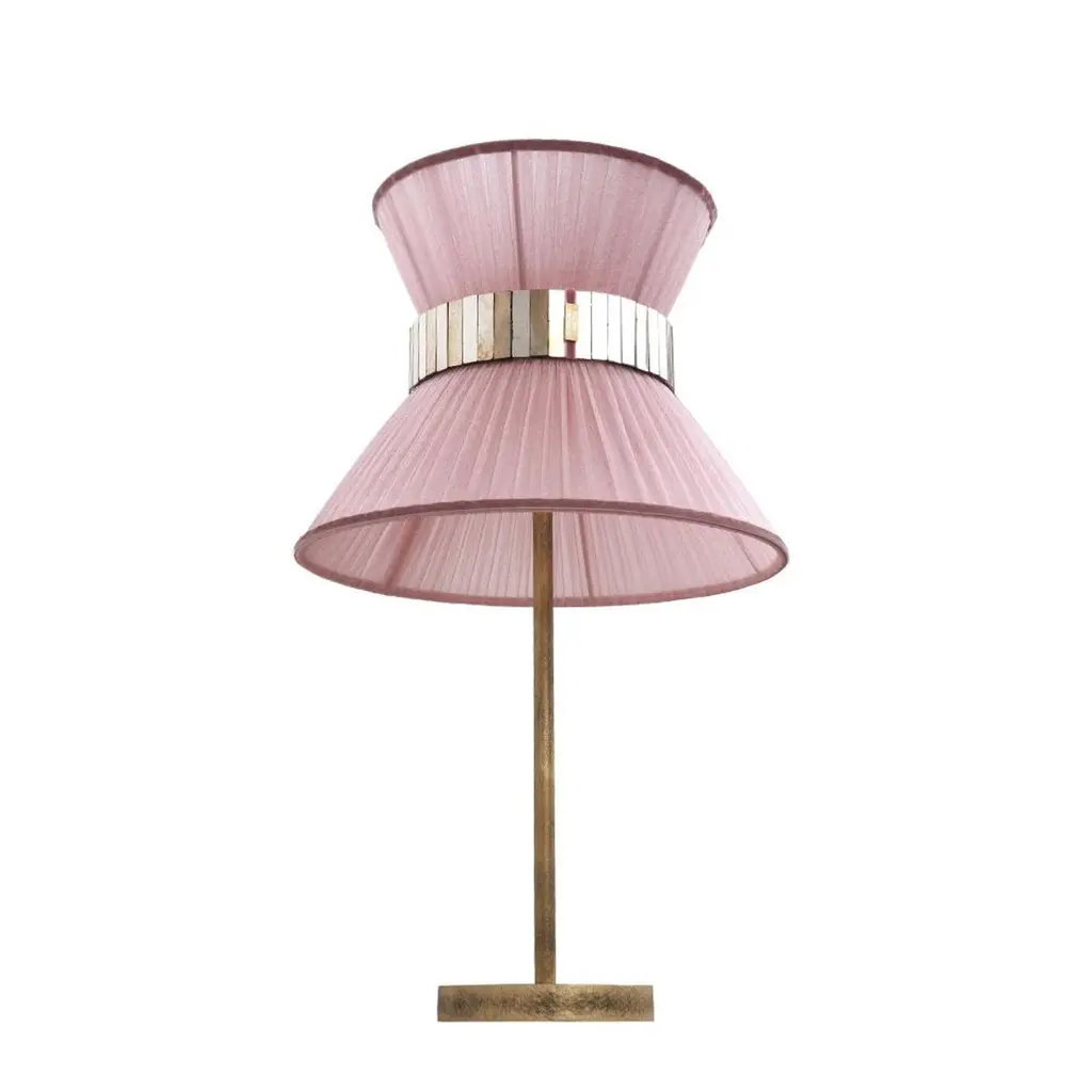 TIFFANY The first one, Audrey inspired the iconicIntroducing Sabrina's breathtaking collection of Tiffany lamps.Year after year Sabrina Landini perpetuates its exceptional expertise, offering much more than a lamp – a touch of originality.Nearly 25 years ago, the first Tiffany lamps were crafted in Sabrina Landini' s workshop, just a stone's throw away from the Milano Navigli. At the House we believe in once-in-a-lifetime Tiffany, the iconic.With its delicate interplay of materials and lines, Tiffany celebrates the art of dazzling and brightening the lives of those you love.The eye-catching glass belt, secretly performed in our Atelier, the variety of silk’ colors and the smooth brass finish, confer uniqueness and natural charme.The perfect balance of allure and sophistication to enrich all kinds of interiors . CE certified and Electrified : US, EU, UK, dimmableAvailable in the lampshade diameter : 23, 30, 40, 60, 80 cm