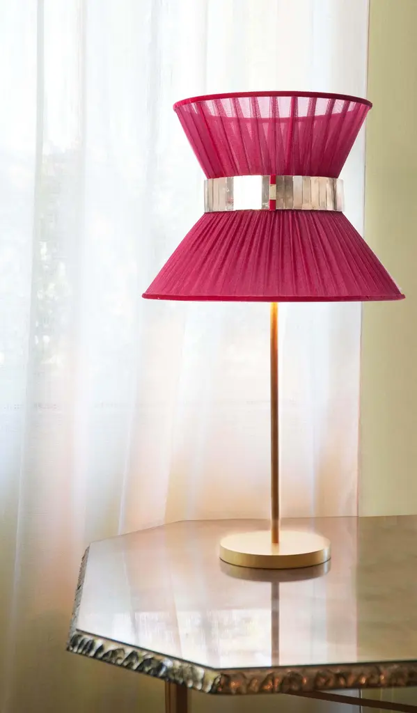 TIFFANYThe first one, Audrey inspired the iconicIntroducing Sabrina's breathtaking collection of Tiffany lamps.Year after year Sabrina Landini perpetuates its exceptional expertise, offering much more than a lamp – a touch of originality.Nearly 25 years ago, the first Tiffany lamps were crafted in Sabrina Landini' s workshop, just a stone's throw away from the Milano Navigli. At the House we believe in once-in-a-lifetime Tiffany, the iconic.With its delicate interplay of materials and lines, Tiffany celebrates the art of dazzling and brightening the lives of those you love.The eye-catching glass belt, secretly performed in our Atelier, the variety of silk’ colors and the smooth brass finish, confer uniqueness and natural charme.The perfect balance of allure and sophistication to enrich all kinds of interiors CE certified and Electrified : US, EU, UK, dimmableAvailable in the lampshade diameter : 23, 30, 40, 60, 80 cm
