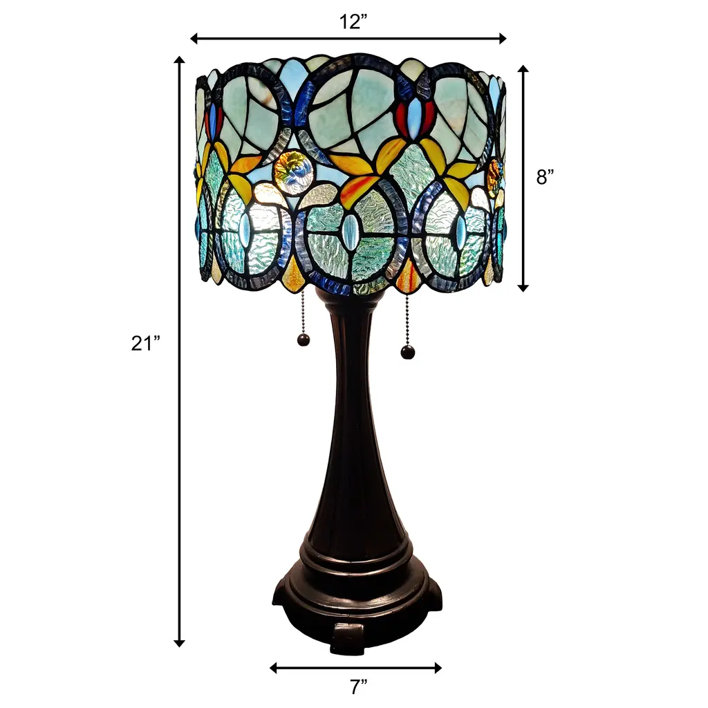 Tiffany Style 1-Light Antique Bronze Table Lamp - Multi-Color