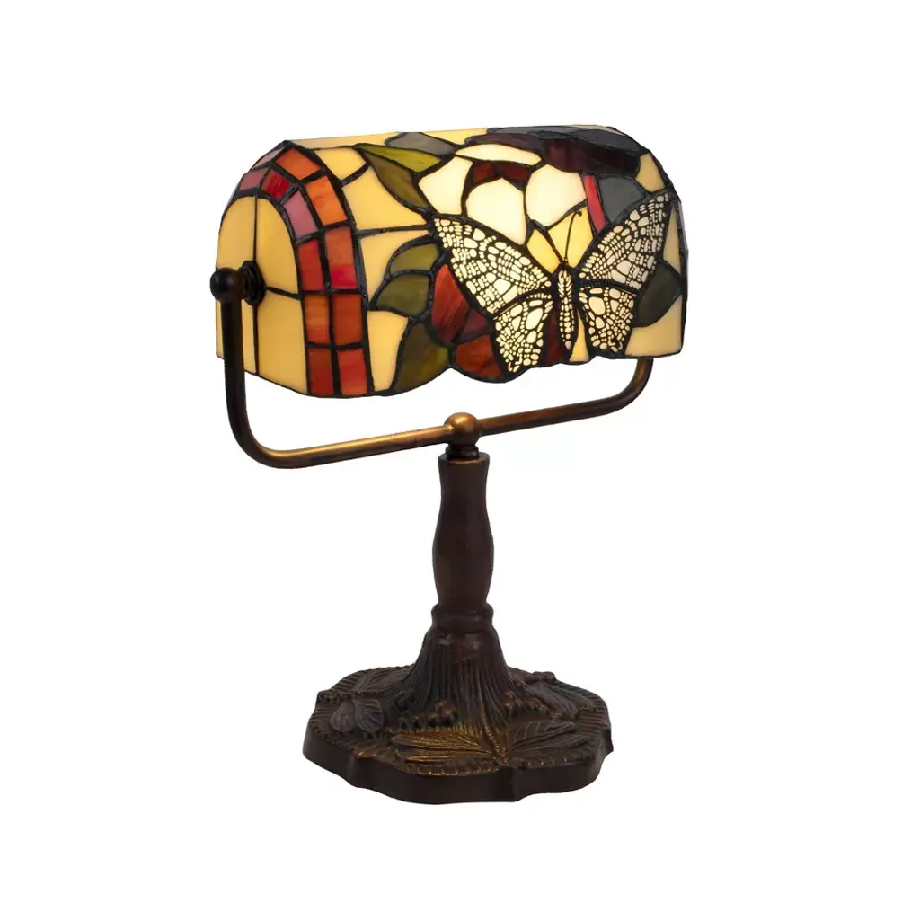 Tiffany Style Bankers Lamp With Butterfly Design (Includes Led Light Bulb) - Trademark Global: Stained Glass, Swivel Arm