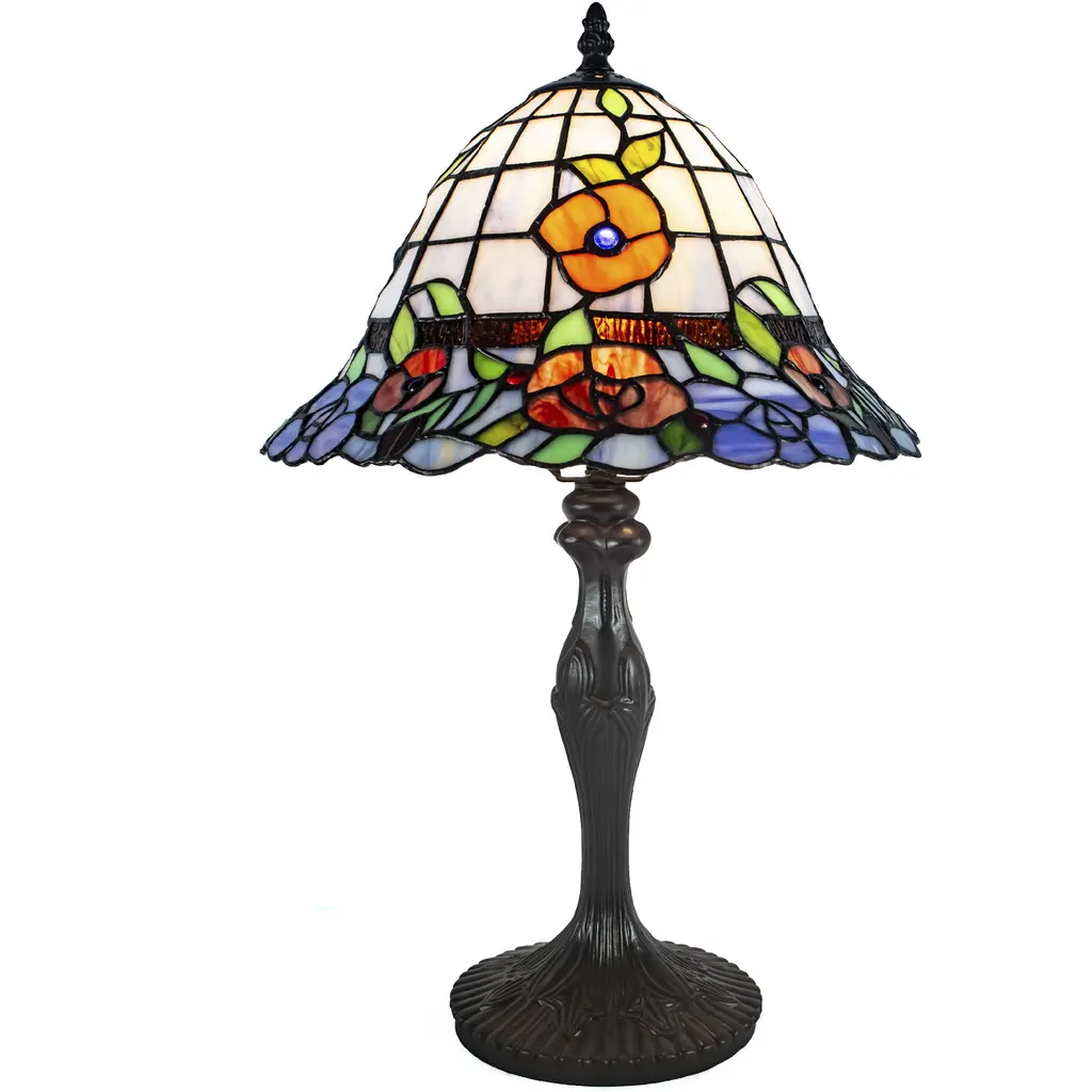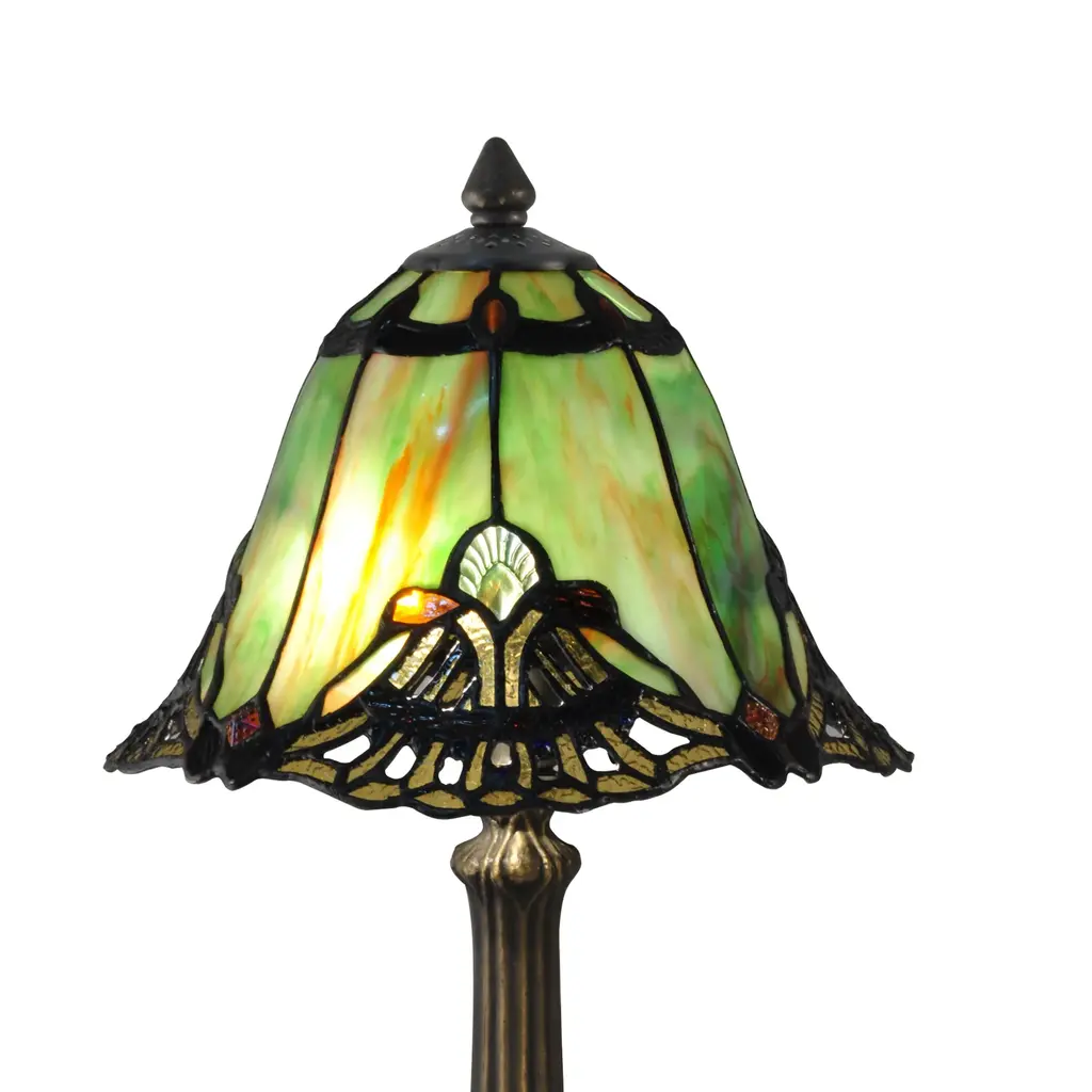This Tiffany-style table lamp will add color and elegance to your room. Its handcrafted shade contains hundreds of pieces of stained glass, and the lamp itself is highlighted by lovely cabochon accents. Attention California residents: This product may contain lead, a chemical known to the State of California to cause cancer and birth defects or other reproductive harm. Note: Shade colors will appear darker and less vibrant when not illuminated. The handcrafted nature of this product creates variations in color, size and design. If buying two of the same item, slight differences should be expected.