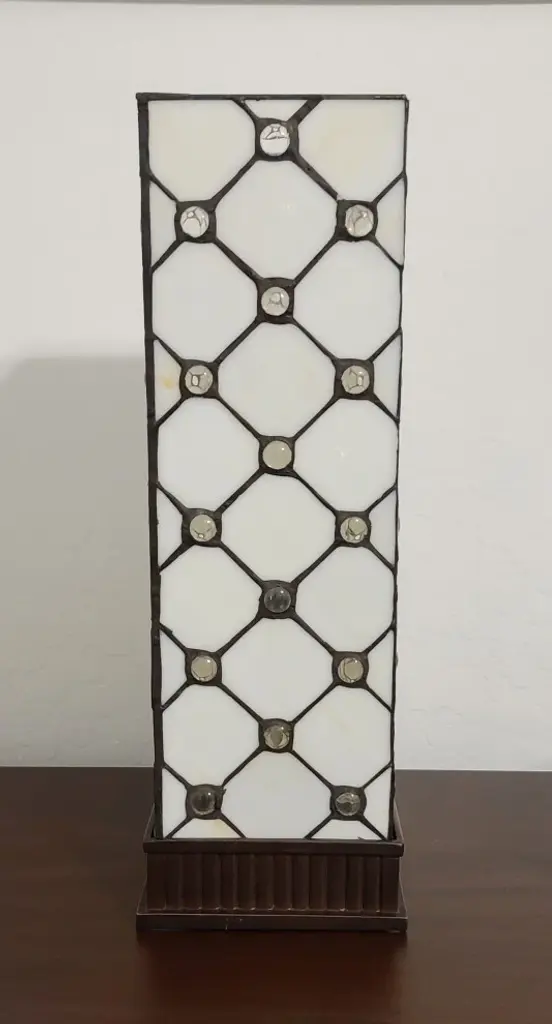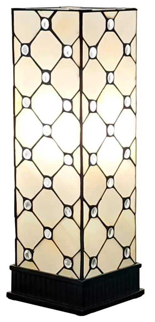 This Tiffany style lamp is hand-crafted using the same techniques that were developed by Louis Comfort Tiffany in the early 20th century. Each piece of glass is hand cut to the perfect shape and size, wrapped in copper foil, and soldered together to create a truly unique piece of art. Made with 112 pieces of hand-cut stained glass and 60 jewels. In-Line rotary on/off switch on the cord. Requires one 60W E26 medium base type A bulb (Not Included). Our lamps are fully compatible with CFL and LED bulbs. Shade colors will appear darker and less vibrant when not illuminated. The handcrafted nature of this product creates variations in color, size, and design. If buying two of the same item, slight differences should be expected. This stained-glass product has been protected with mineral oil as part of the finishing process. Please use a soft dry cloth to remove any excess oil.