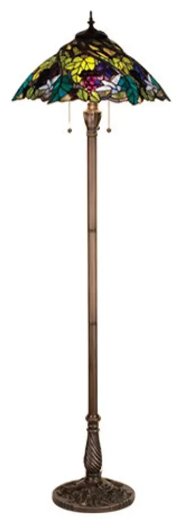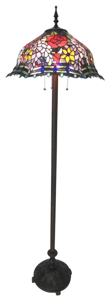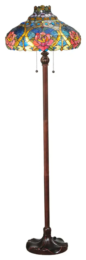 Illuminate and brighten even the darkest corners of your living room, bedroom, office or den with this stained glass table lamp. The beautiful floral design creates an array of tinted light to inject personality and color to bland and boring locations, while the dark antique finish adds charm without being overly flashy.Maximize light efficiency, and avoid turning on your overhead light with the two bulbs in this Tiffany-style lamp. Use the simple pull chains to independently turn each bulb on and off, allowing you to customize the amount of light in the room. The downlight direction helps to flood the floor and surrounding areas with proper luminescence.Indoor setting makes it a perfect addition to living rooms or officesAntique finish adds charm and invokes a nostalgic auraGlass and metal offer beauty and durabilityTwo E27, Type A or G 60-watt bulbs (not included) allow you to adjust the level of brightnessTurn the lights on and off with the in-line switch with pull chainShade measures 16"WBase measures 11.25"WTotal height of the lamp is 27"This fixture needs to be hard wired. Professional installation is recommended.Note: This disclaimer does not apply to floor and table lamps.