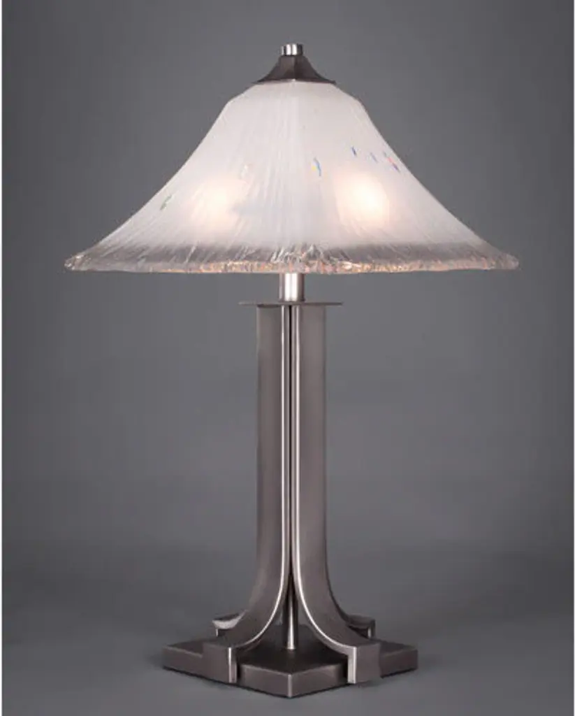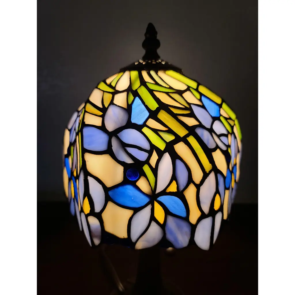 The soft colors from this iris-patterned Amora Lighting table lamp add gentle light to any room. This Tiffany Style lamp is handcrafted using the same techniques that were developed by Louis Comfort Tiffany in the early 1900s.Attention California residents: This product contains lead, a chemical known to the state of California to cause cancer and birth defects or other reproductive harm. Note: Shade colors will appear darker and less vibrant when not illuminated. The handcrafted nature of this product creates variations in color, size and design. If buying two of the same item, slight differences should be expected. If buying two of the same item, slight differences should be expected. This stained glass product has been protected with mineral oil as part of the finishing process. Please use a soft dry cloth to remove any excess oil.