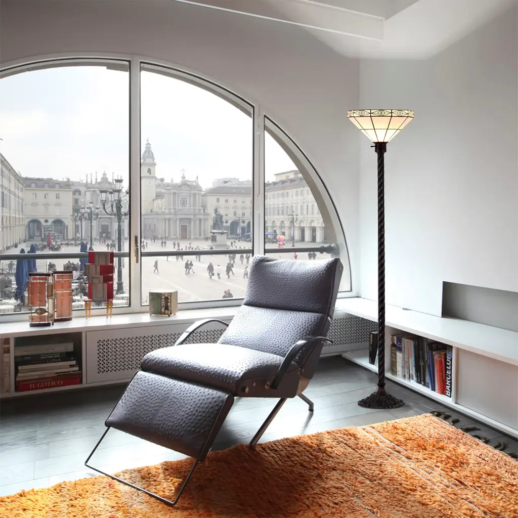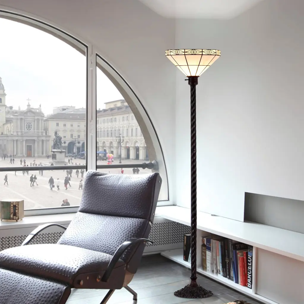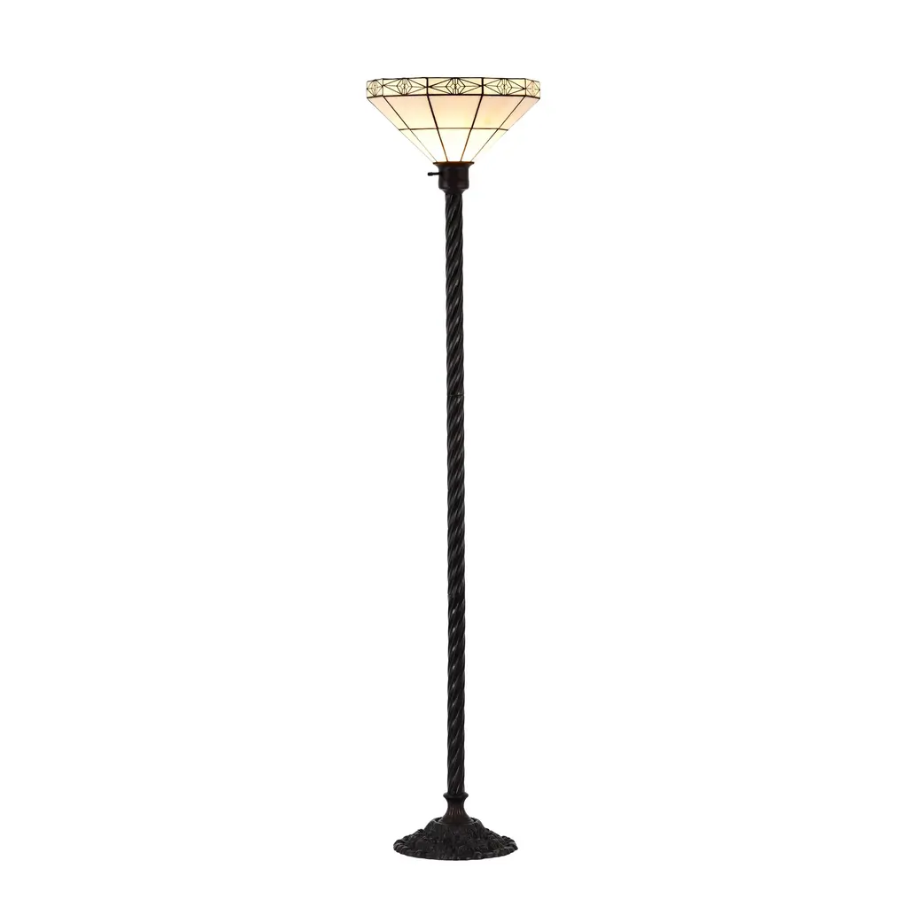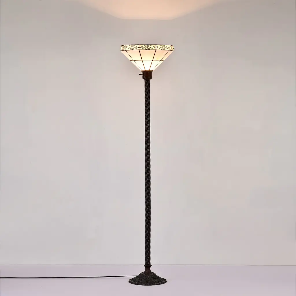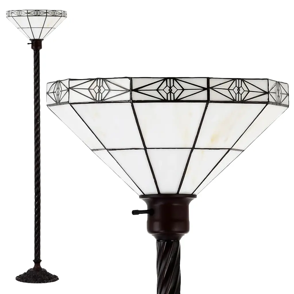 Tiffany-Style Mission-Style White Torchiere - White/bronze