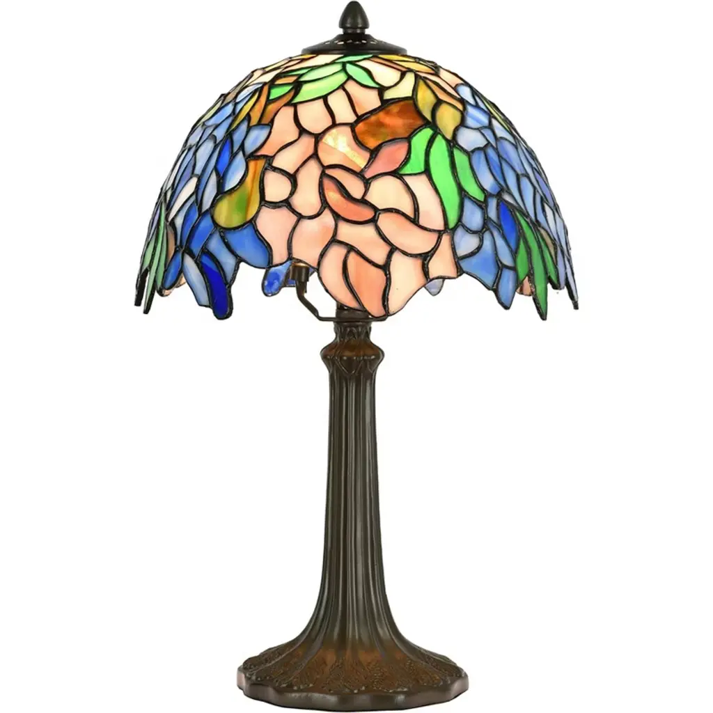 Bathe in the warm glow of this stunning Tiffany-style table lamp featuring a distinct peony design. Beautifully crafted with individual pieces of hand-cut stained glass wrapped in fine copper foil, this lamp brings elegance to any surface it rests on. Use it as a bedside reading lamp. or dress up an office desk or end table.Turn on your lamp with the convenient line switch cord and enjoy vivid hues of marigold, plum, forest and pink cast by the lamp's bulb. A cast-metal base finished in a rich bronze tone sturdily supports the lamp's shade to add strength and to prevent tipping.Beautifully crafted with individual pieces of hand-cut stained glass wrapped in fine copper foilDetailed shade depicts peonies to add artistic appealVivid hues of marigold, plum, forest and pink cast colorful shadows with the use of a 100 watt bulb (not included)Cast metal base sturdily supports the lamps Tiffany-style shade to avoid tippingOperates with a conveniently placed line switch cord to avoid fumbling for switchesMeasures 23"H x 16" in diameter at the shadeNote: Shade colors will appear darker and less vibrant when not illuminated.The handcrafted nature of this product creates variations in color, size and design. If buying two of the same item, slight differences should be expected. Attention California residents: This product may contain lead, a chemical known to the State of California to cause cancer and birth defects or other reproductive harm.