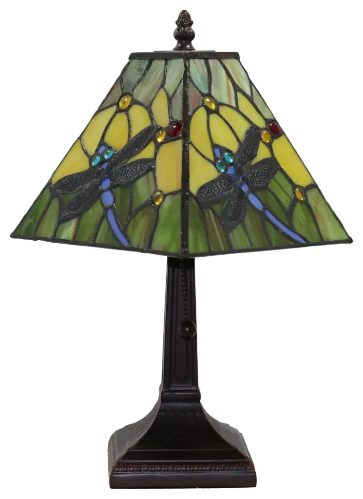 This Tiffany style lamp is hand-crafted using the same techniques that were developed by Louis Comfort Tiffany in the early 20th century. Each piece of glass is hand cut to the perfect shape and size, wrapped in copper foil, and soldered together to create a truly unique piece of art. Made with 120 pieces of hand-cut stained glass and 24 jewels. Pull chain switch for easy operation. Requires one 40W E26 medium base type G bulb (Not Included). Our lamps are fully compatible with CFL and LED bulbs. Shade colors will appear darker and less vibrant when not illuminated. The handcrafted nature of this product creates variations in color, size and design. If buying two of the same item, slight differences should be expected. This stained-glass product has been protected with mineral oil as part of the finishing process. Please use a soft dry cloth to remove any excess oil.