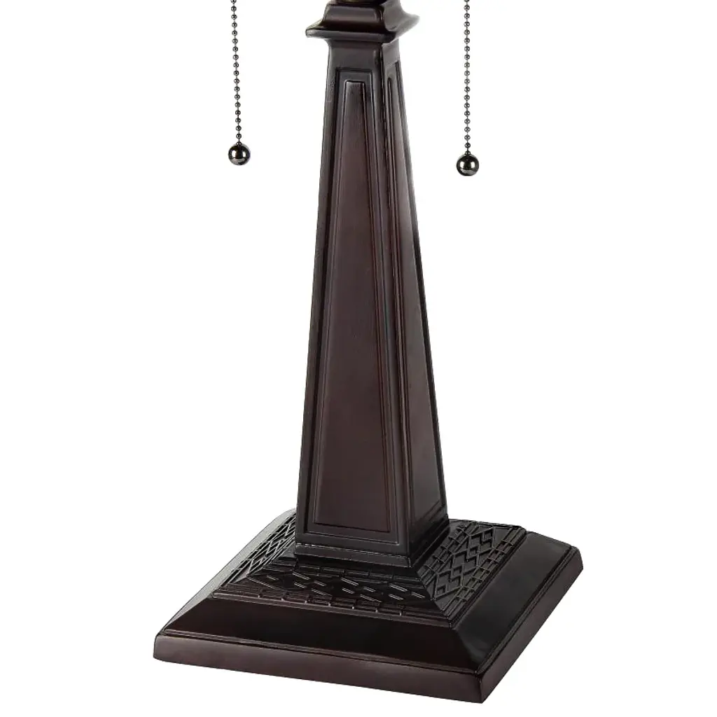 Hand-crafted using the same techniques that were developed by Louis Comfort Tiffany in the early 1900s, this beautiful Tiffany-style piece contains over 365 hand-cut pieces of art glass. The dark antique bronze finish will add a lasting charm to any room. Shades: Tones of Blue, Beige, Amber, Green, and Red art glass. Requires: Two (2) 100 watt max medium base bulbs (Not Included). Fixture Dimensions: 22 inches high x 16.1 inch diameter. Attention California residents: This product may contain lead, a chemical known to the state of California to cause cancer and birth defects or other reproductive harm. Please note: Since these are hand crafted products, the exact color and size of glass pieces may vary. Colors of the glass will appear darker and less vibrant when not illuminated. Handmade glass will vary from one piece to the other; since every piece is hand crafted, sizing may vary. Glass made at different times may also vary in color. Light bulbs used in lamps or ambient lighting may affect the appearance of the products. Stained glass has been protected with mineral oil as part of the finishing process. Please use a soft dry cloth to remove any excess oil. -All photos are taken of the same item. Multiple photos are used show what the product looks like with light on, (brighter image) and with the light off, (darker image).