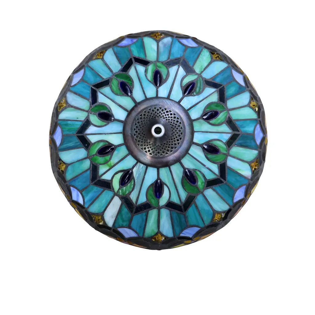 This Victorian design 3-light Tiffany-style double-lit table lamp would perfectly fit in a bedroom, office, and living room! The shade is hand-crafted, using the same methods developed by Louis Comfort Tiffany in the early 1900's. This process entails using 517 hand-cut stained art glass pieces and 56 glass beads, each wrapped in fine copper foil and soldered together at extremely high temperatures to form each unique piece. Exact size to the nearest inch may vary, and exact color of each glass piece may vary due to each piece being hand-crafted. Since these are hand-crafted products, the exact color of glass pieces may vary. Colors of the glass will appear darker and less vibrant when not illuminated. Handmade glass will vary from one piece to the other; glass made at different times will also vary. Light bulbs used in lamps or ambient lighting may affect the appearance of the products. Stained glass product has been protected with mineral oil as part of the finishing process. Please use a soft dry cloth to remove any excess oil.