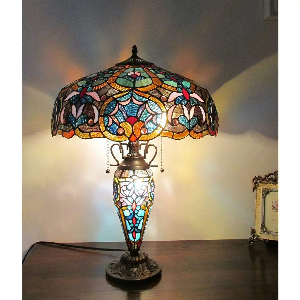 Tiffany Style Victorian Design Double Lit 2 +1 Dark Bronze Table Lamp - Multi-Color