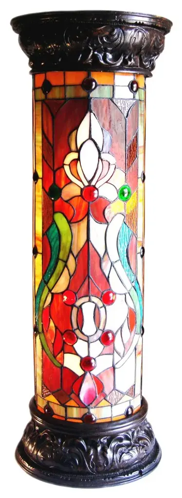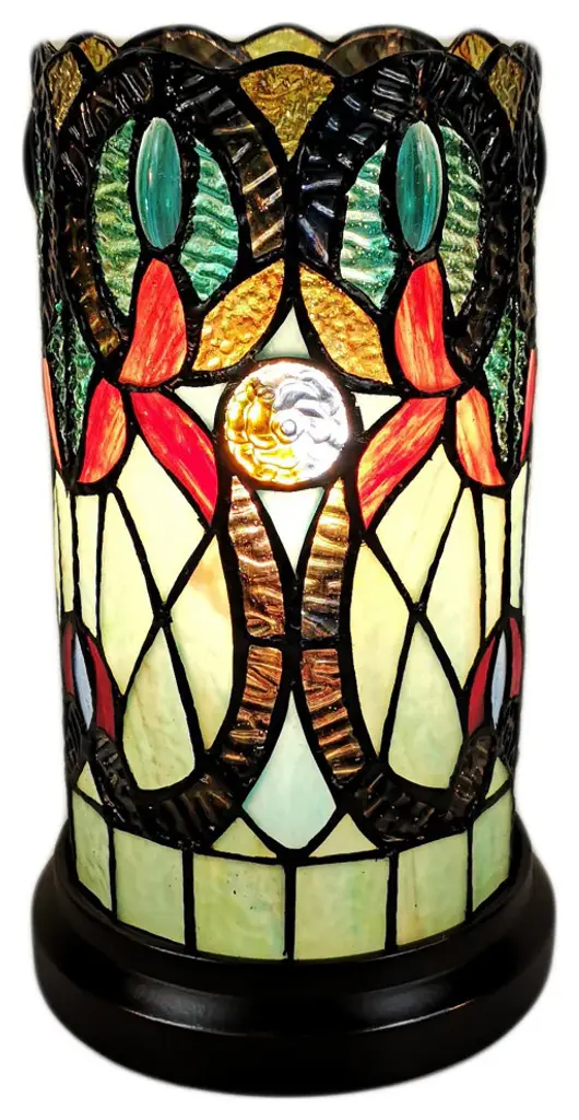 This Tiffany style lamp is hand-crafted using the same techniques that were developed by Louis Comfort Tiffany in the early 20th century. Each piece of glass is hand cut to the perfect shape and size, wrapped in copper foil, and soldered together to create a truly unique piece of art. Made with 168 pieces of hand-cut stained glass and 9 jewels. In-Line rotary on/off switch on the cord. Requires one 40W E26 medium base type G bulb (Not Included). Our lamps are fully compatible with LED bulbs. Shade colors will appear darker and less vibrant when not illuminated. The handcrafted nature of this product creates variations in color, size and design. If buying two of the same item, slight differences should be expected. This stained-glass product has been protected with mineral oil as part of the finishing process. Please use a soft dry cloth to remove any excess oil.