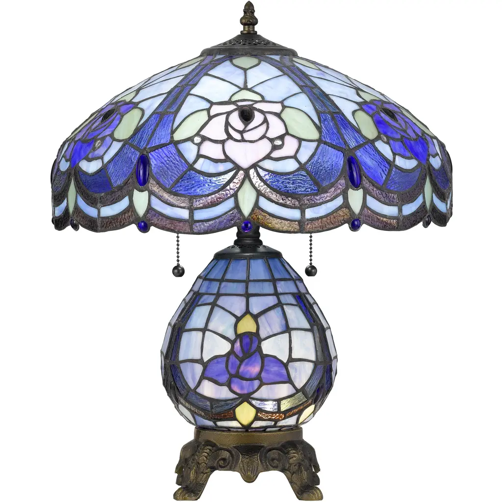 "Add a pop of color to your space with this elegant painted floral glass tiffany style lamp. It Features a fully functional night light and a double pull chain mechanism. All items are securely packed and conveniently shipped in one carton. Night LightPull Chain Switch7 Watt Led Night Light Bulb Included"