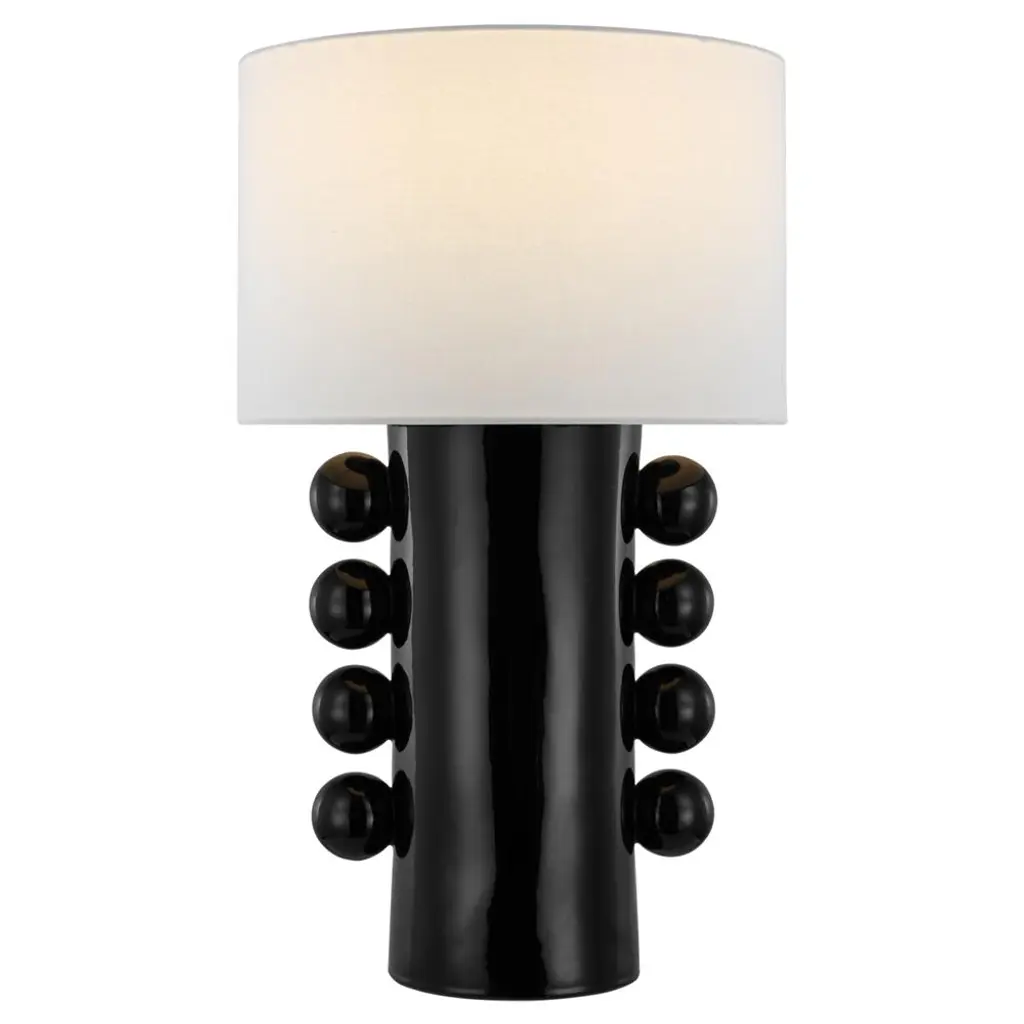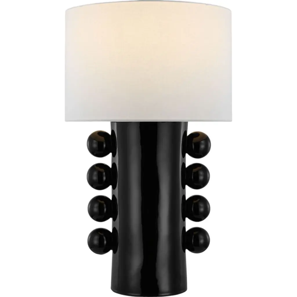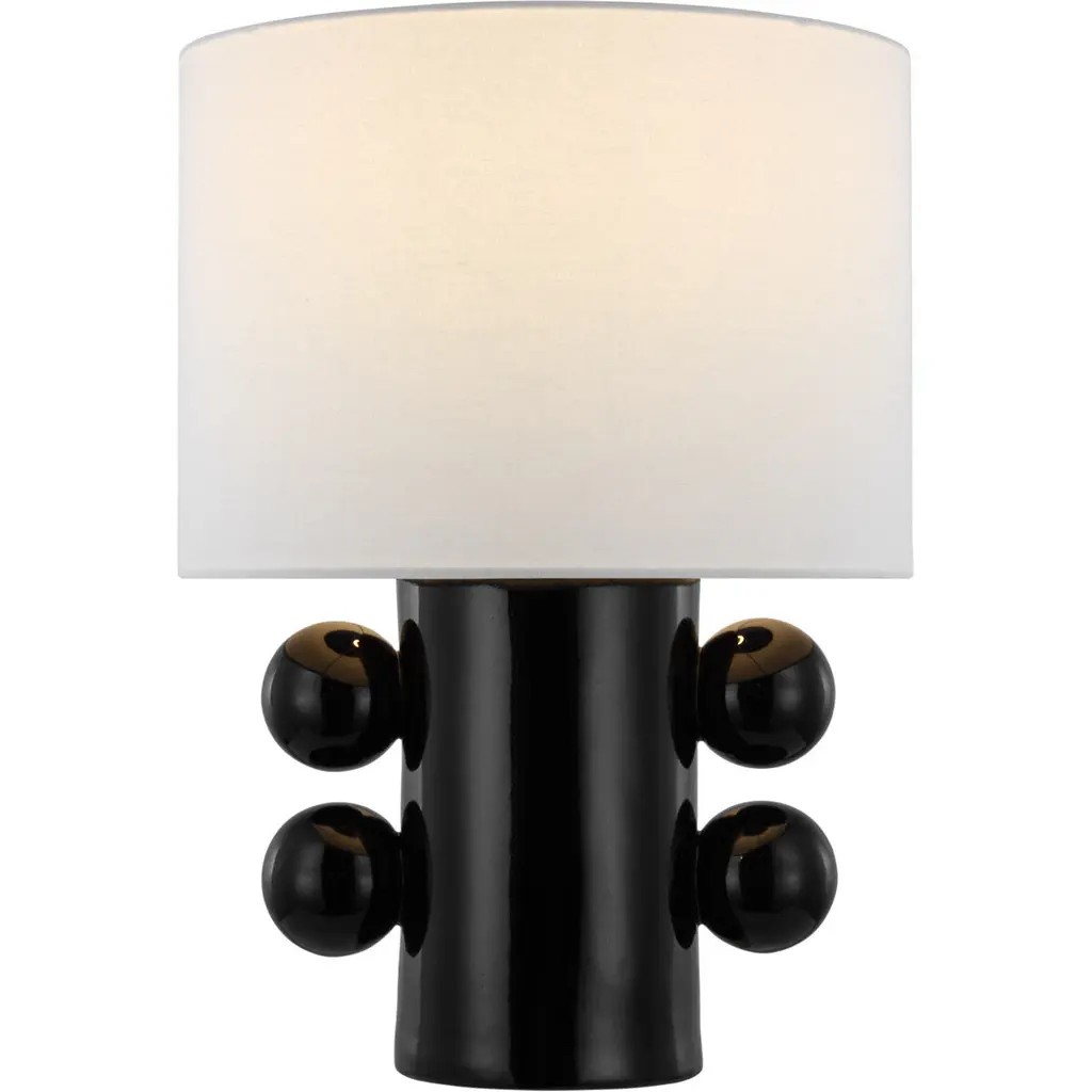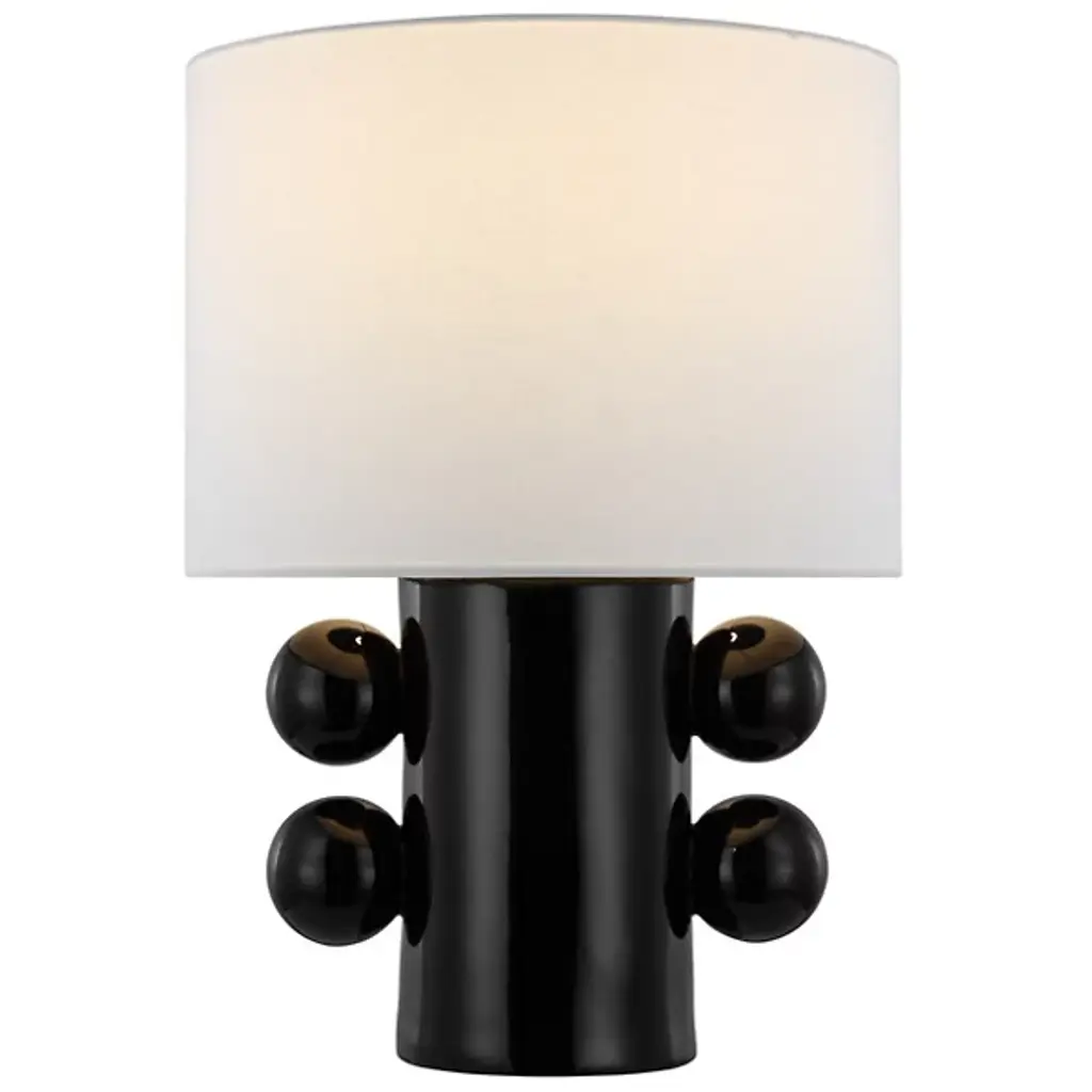 The Tiglia sparks conversation with its substantial base accentuated with four matching orbs. Its plaster white finish lends a tasteful look, complemented by its barrel linen shade. Showcase one as a statement piece and pair it with tabletop decor for an added touch of style.