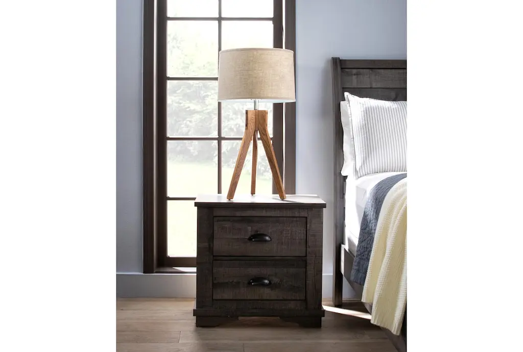 The Timber Brown 31" Oak Wood Tripod Table Lamp brings a rustic charm to any bedroom or living room. Its sturdy oak wood construction and tan shade create a warm and inviting atmosphere. Perfect for adding a touch of natural beauty to your space.