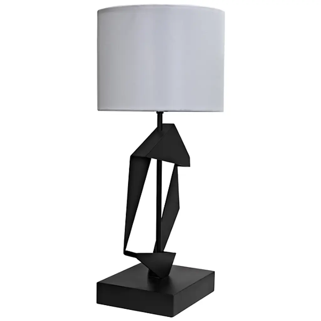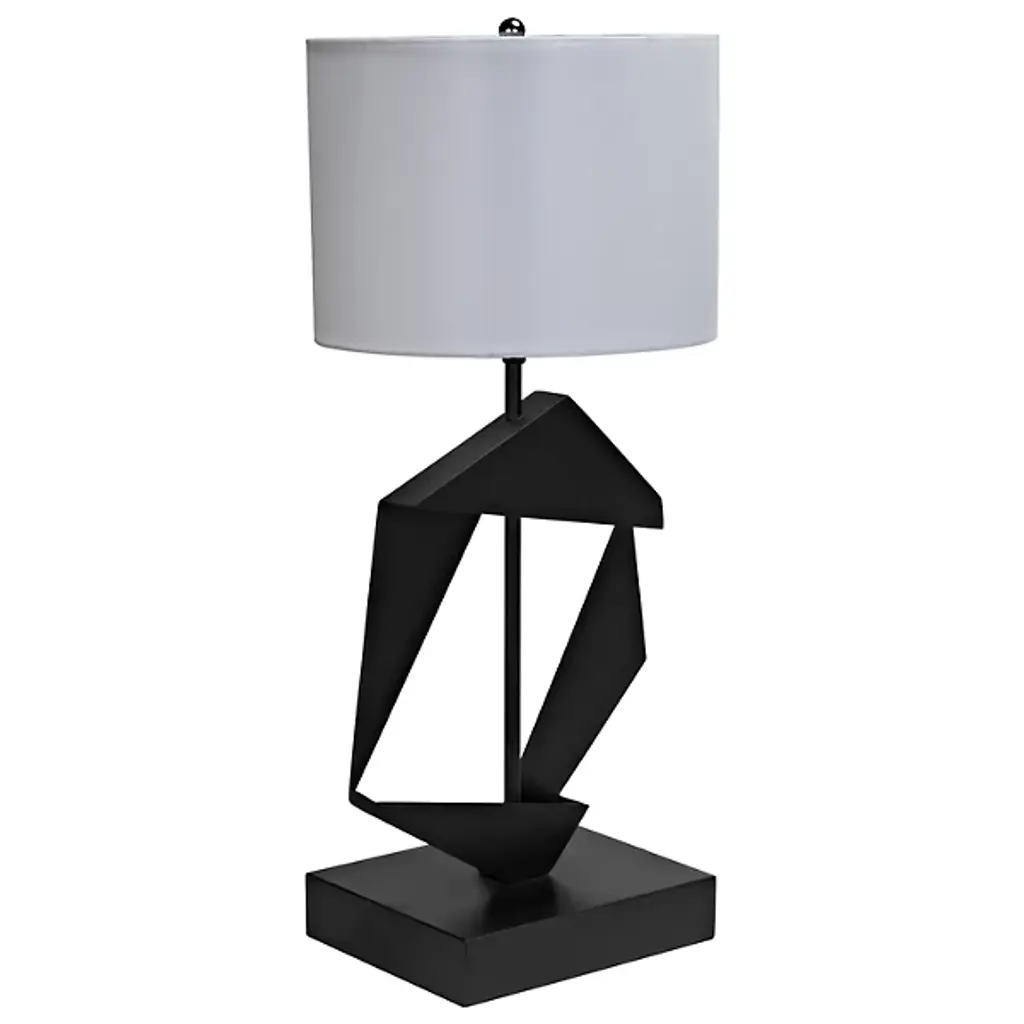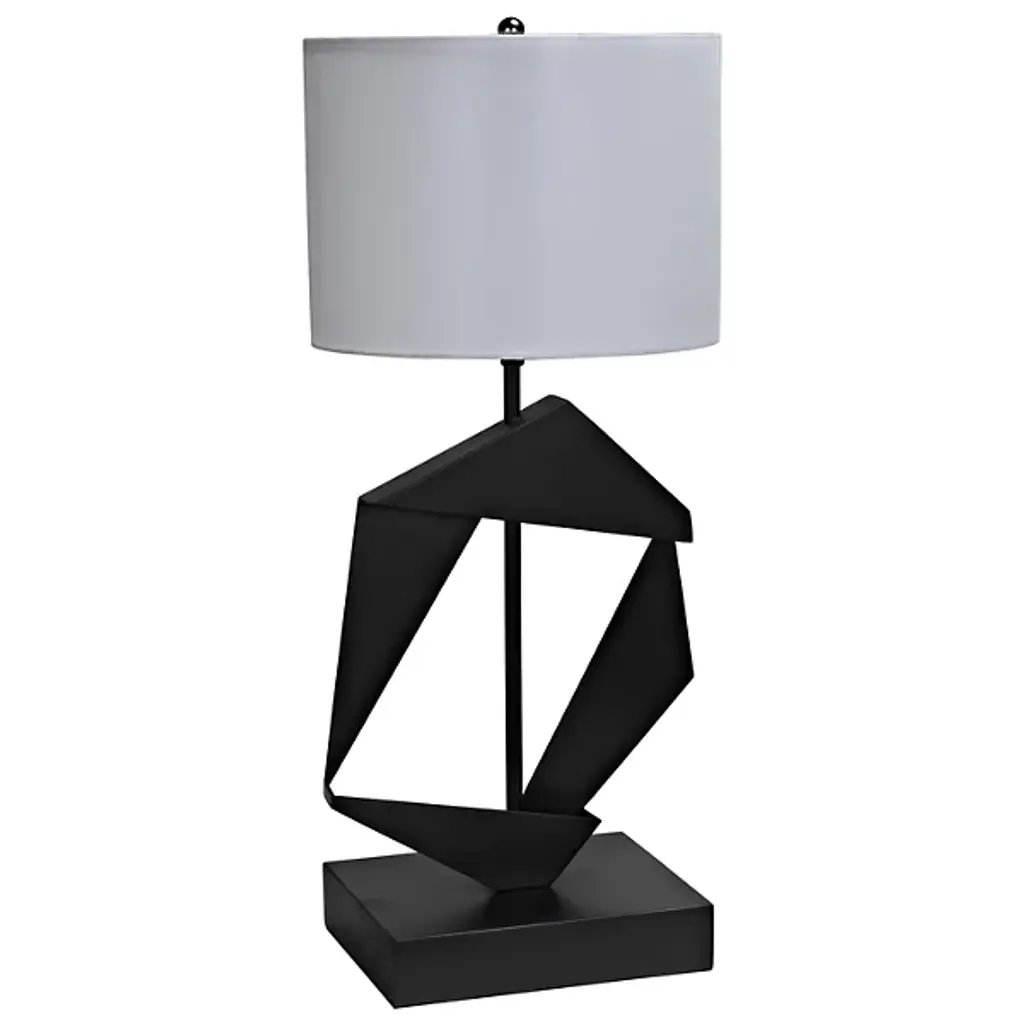 The Timothy Table Lamp from Noir is a masterfully handcrafted piece, captivating with its origami-inspired design and industrial steel construction finished in matte black. Intriguing "folded" triangular shapes lend a dimensional and kinetic quality, transforming it into a true work of art. Accompanied by a white drum shade, this lamp radiates elegance and style, making a sophisticated statement in any room. Illuminate your space with this unique blend of craftsmanship and contemporary design.