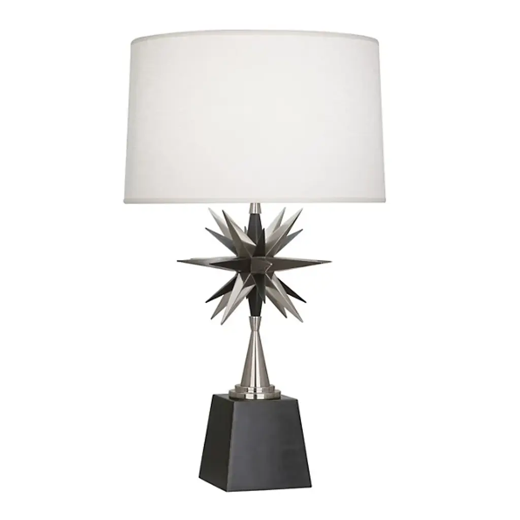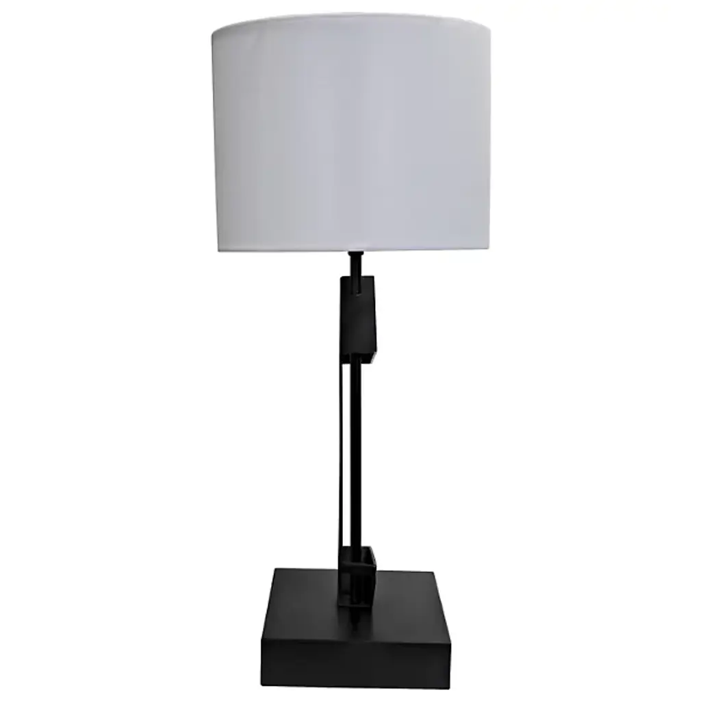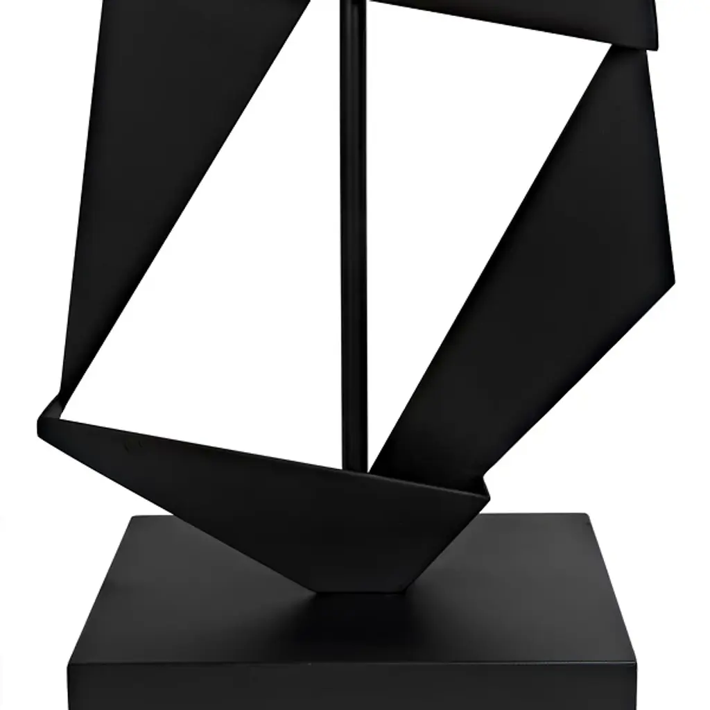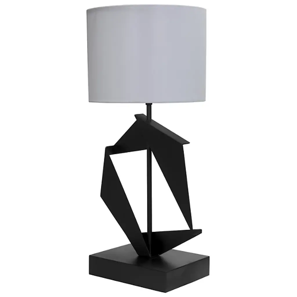 The Timothy Table Lamp from Noir is a masterfully handcrafted piece, captivating with its origami-inspired design and industrial steel construction finished in matte black. Intriguing "folded" triangular shapes lend a dimensional and kinetic quality, transforming it into a true work of art. Accompanied by a white drum shade, this lamp radiates elegance and style, making a sophisticated statement in any room. Illuminate your space with this unique blend of craftsmanship and contemporary design.