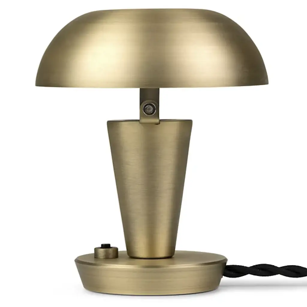 The Tiny Mini Table Lamp from ferm LIVING brings Art Deco flair to your living space. It has a shade that is tiltable, allowing the bright LED light to splay along your wall, expanding the glow. The shade beautifully crowns a tapered encasement for an uncluttered presentation. It’s composed of iron for durability, and a disc-shaped baseplate keeps it stable. An on/off base switch offers convenience to this versatile piece.