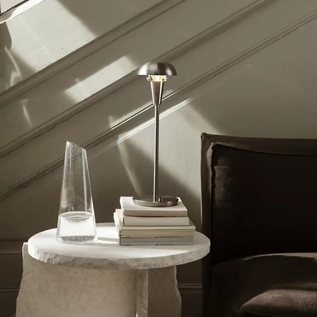 The Tiny Table Lamp from ferm LIVING is an Art Deco fixture that brings versatility to your space. While it is designed for windowsills and desks, its tiltable shade allows the LED light to splay along walls for an expansive glow. This tiny lamp is composed of durable iron, forming a tapered encasement that is neatly crowned. It complements mid-century modern and contemporary settings and has an on/off base switch for easy operation.