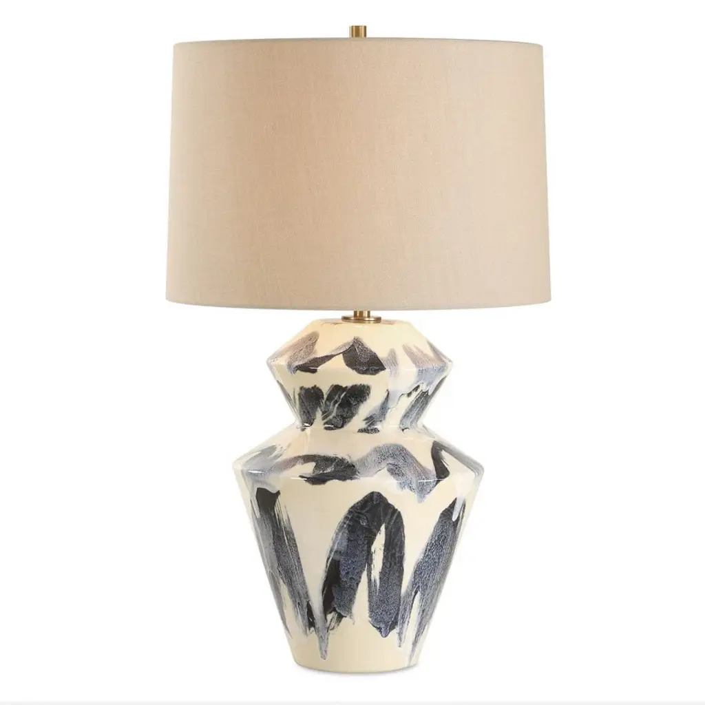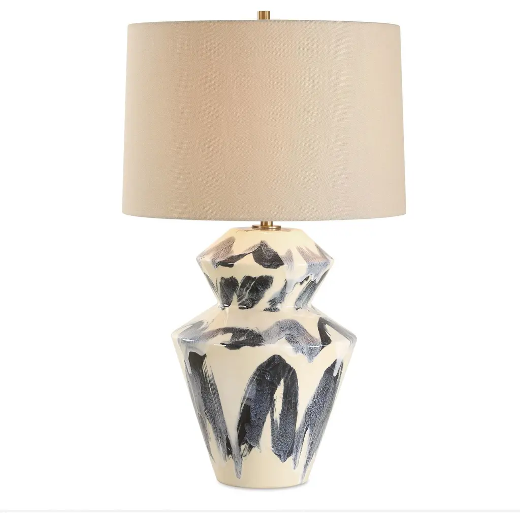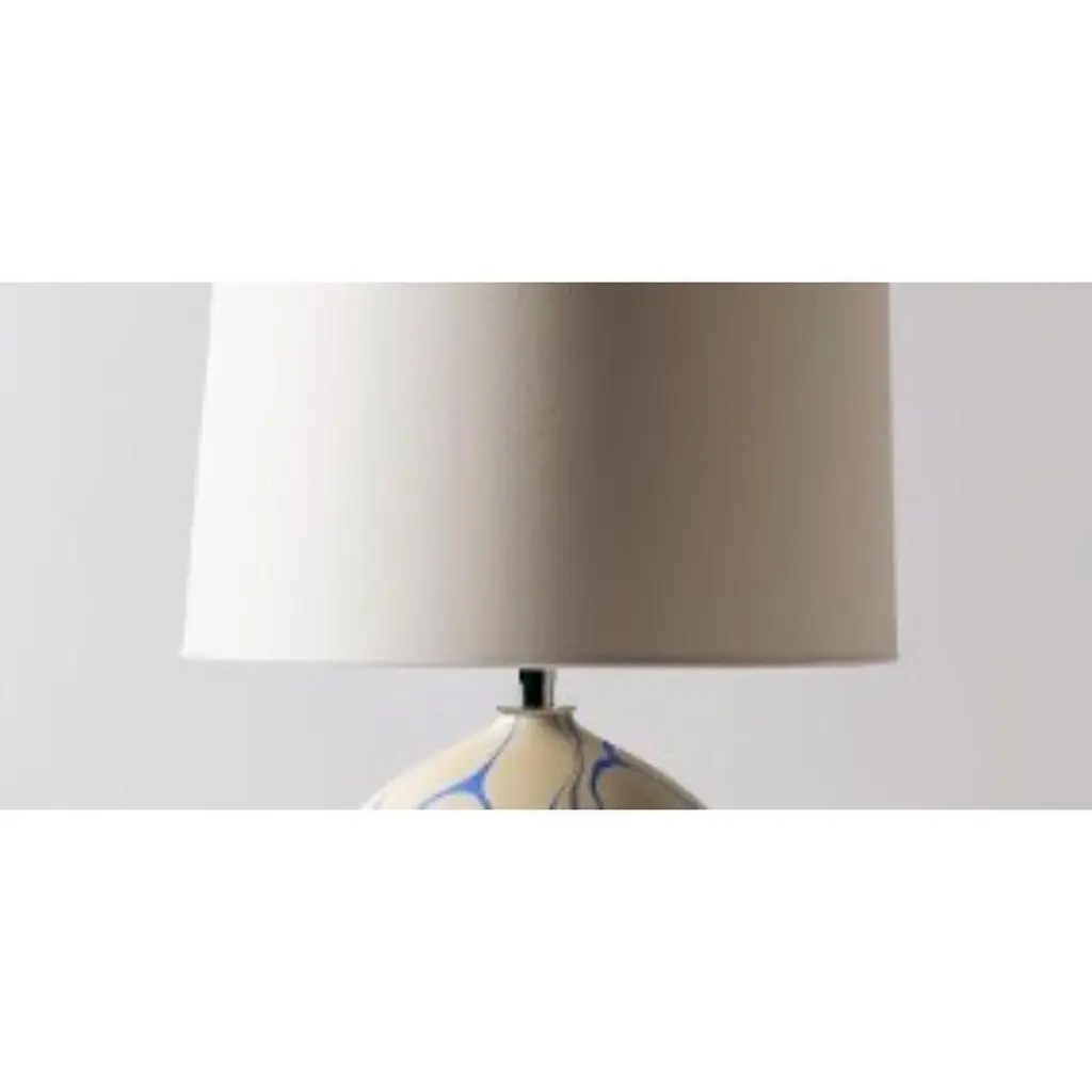 Titan lamp by Elyse GrahamDimensions: D31 x H49 cmMaterials: Plaster, Resin, Cotton rag Paper, brass, Nickel. HARDWARE: POLISHED NICKEL-PLATED BRASS UNO THREADED SOCKETwith TURN KEY SWITCH, IN-LINE DIMMER.MOLDED, DYED, AND FINISHED BY HAND IN LA. CUSTOMIZATIONAVAILABLE.ALL PIECES ARE MADE TO ORDER.All our lamps can be wired according to each country. If sold to the USA it will be wired for the USA for instance.Our Hydro Collection is inspired by the grooves and patterns that waterways make through the landscape as seen from above. The layers of gradation in the pigment on the exterior of the bases reference topographical maps. We take queues for our palette from the rivers for which the pieces are named. Much like the rivers that inspire them, the pattern on each piece is unique. Each lamp base is hand-cast with hydrocal plaster inside of a unique balloon shape. The interior of each piece is poured with layers of resin, impregnating the plaster with added strength and hardness.We have developed a unique process for pigmenting the exterior of the bases that is based on the technique used for marbling paper. Each lamp base is sealed with a UV resistant acrylic coating. Our shades are made by hand using a heavyweight cotton rag paper and attached to a nickel-plated swivel fixture with a turn switch. An in-line dimmer switch on the cord provides adjustable light settings. Due to the nature of the UV sensitive materials in our lamp bases we recommend using LED lightbulbs exclusively.MEET OUR TEAMElyse Graham is the founder and creative director of the studio. Driven by Elyse’s unique vision of building a studio that fosters and emphasizes connection, play, and experimentation (of people, processes, and in turn the objects created and shared) our small team works closely and collaboratively on each project. Elyse received a BA in sculpture and semiotics at Brown University. After years of making sculpture and running a business in jewelry design, Elyse decided to merge her separate practices and redirect her attention toward collectible design in 2013. The creative trajectory of the studio is heavily influenced by Graham’s background in fine art, specifically her interest in process-driven and material-based artwork. The studio’s vocabulary of shapes, patterns, and forms comes from a lineage of unconventional processes Graham has developed and built for working with plaster and resin. Graham shares her studio as well as her home with her husband, Lewis Mauk and their daughter, Eero. Miller Robinson is head of our production department. From pigmenting and casting materials for all of our products in plaster and resin to graphic and production design, they wear many hats in our studio. Miller joined our team in 2014 and has been an integral part of designing many of our experimental processes that have lead to the creation of our unique MetaMATERIAL. Like Elyse, Miller has a background in material and process-oriented making, which led to an instant connection and collaborative understanding between the two. Miller received their BFA from Otis College of Art and Design with a focus on painting, installation, performance, and writing. Their individual art practice focuses on the preservation and potentialities of underrepresented histories and encompasses objects, garments, actions, tattooing, and books. Their personal work has been exhibited in Los Angeles at the Southwest Museum, Los Angeles Municipal Art Gallery, Heritage Square Museum, and with Los Angeles Contemporary Exhibitions (LACE), as well as HORESEANDPONY Fine Arts in Berlin.Lewis Mauk is our studio and operations engineer. Working on facilities and production design as well as engineering and leading all of our large-scale constructions and installations, Lewis’ unique set of technical skills gives form and structure to our studio’s unconventional ideas and processes. Lewis has been working behind-the-scenes since the creation of the studio but joined our team full-time in 2020. Consistent with the rest of our team, Lewis has a background in process-driven fine art and has extensive training in woodworking, printmaking, and photography. He received a MFA from CalArts and has worked across the fields of education and fabrication. Lewis’ combined interest in the creation of personal archives mixed with his commitment to sustainable life practices, has brought a focus and important emphasis on designing studio projects and processes that imagine ways to reduce and reuse studio material fragments.