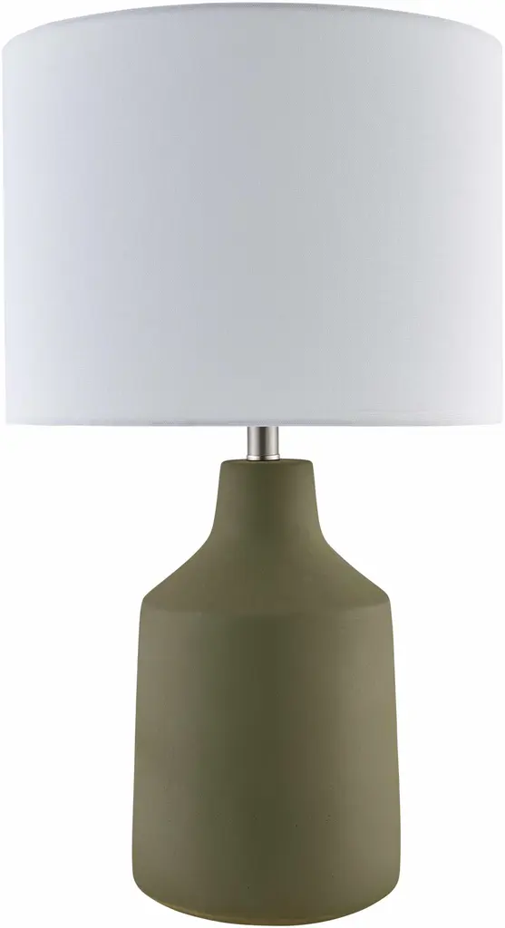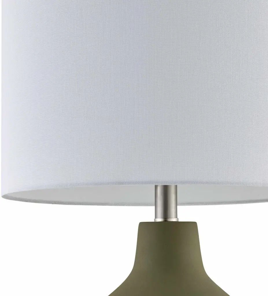 Collection: Toamasina Colors: Green, White, Translucent Material: Body: Cement / Shade (Outside): Linen / Shade (Inside): Linen Styles: Transitional,Traditional Made In: China Lighting Type: Accent Table Lighting Shade Material: Linen, Linen Shade Color: White, White Cord Length: 6' Switch Type: On/Off Number of Bulbs: 1 Socket Type: E-26 Bulb Wattage: 100W