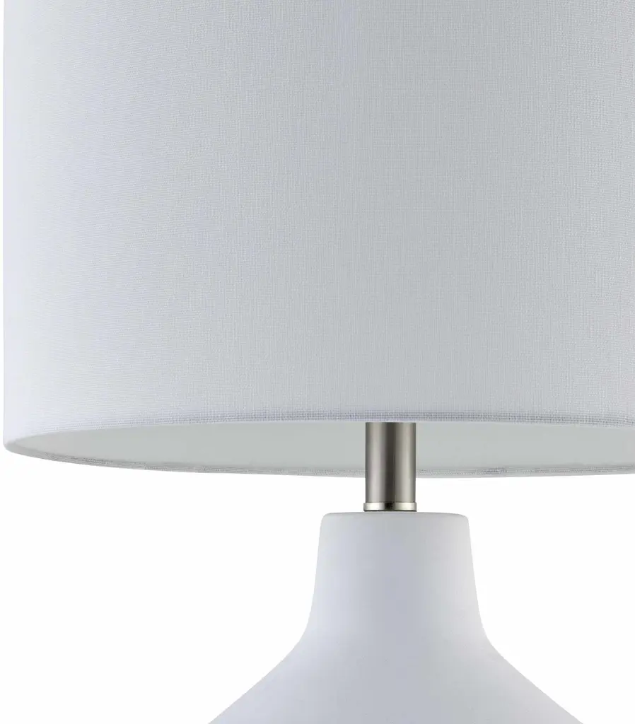 Collection: Toamasina Colors: White, Translucent Material: Body: Cement / Shade (Outside): Linen / Shade (Inside): Linen Styles: Transitional,Traditional Made In: China Lighting Type: Accent Table Lighting Shade Material: Linen, Linen Shade Color: White, White Cord Length: 6' Switch Type: On/Off Number of Bulbs: 1 Socket Type: E-26 Bulb Wattage: 100W
