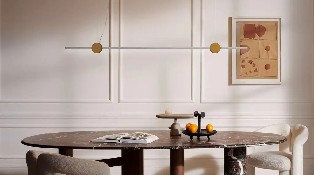 Tobia Scarpa Eitie Line Lamp For CassinaA pendant light designed by Tobia Scarpa, that takes shape as a seemingly simple structure with sophisticated, innovative technology, available in two lengths.The pendant lamp is composed of a luminous line that can be rotated 360 degrees to adjust its position and the brightness of the light.MATERIALSPietra Serena, aluminium, brass.A family of eye-catching lamps, inspired by a wall installation designed by Tobia Scarpa, that emerges from a seemingly simple structure and sophisticated, innovative technology. The concept for Eitie, a palindrome in tribute to Scarpa’s age and his extensive experience in the world of design, elaborates upon the idea of a luminous line that, thanks to unique circular connectors, is expressed in various configurations. Starting with the original work, part of the Benetton Foundation Research Centre, Cassina has revisited the distinctive wall-mounted lighting system to produce a pendant light, a table lamp and a floor lamp that form a visually exciting collection. Each element is composed of two or three luminous lines that can be joined to form various compositions, thanks to circular black metal connectors embellished with silver details that contain cutting-edge technology hidden in their interior. The joints of the table and floor lamps can be opened 30 degrees, to the right or left, to create different visual effects, while the triangular wall-mounted version is stationary. Each luminous line can be rotated 360 degrees to adjust its position and the brightness of the light.This lamp is wired for Europe, if used in US or any other country the client will need to convert it.Important information regarding images of products:Please note that some of the images show other colors and variations of the model, these images are only to present interior design proposals. The item that is selling is on the first image.Important information regarding color(s) of products:Actual colors may vary. This is due to the fact that every computer monitor, laptop, tablet and phone screen has a different capability to display colors and that everyone sees these colors differently. We try to edit our photos to show all of our products as life-like as possible, but please understand the actual color may vary slightly from your monitorAbout the Designer:Architect and designer Tobia Scarpa graduated in 1969 at the University of Venice and in the same year won a “Compasso d’Oro” prize for his “Soriana” armchair designed for Cassina. He has since been awarded many other design prizes and many of his designs can also be found on show in some of the world’s key museums, including his ‘Libertà’ chair on show at the Louvre.As an architect he has worked for both public and private clients including the Benetton Group for whom he famously designed the industrial area and production plants in Castrette di Villorba (Treviso). Even today, the Benetton facilities are still held up as an example of aesthetic-functional excellence, one of the world’s most exciting pieces of industrial architecture.About The Manufacture: Established in 1927 by Cesare and Umberto Cassina in Meda, Italy, Cassina launched industrial design in Italy in the 1950s, based on a totally innovative approach that marked the transition from artisan production to mass production. With a mindset focused on research and innovation, Cassina combines technology and long-standing artisan craftsmanship. Memory, research, innovation. Cassina blends traditional skills and superior productivity, meticulous attention to detail and passion, uniqueness and experimentation, wellbeing and sustainability. Today, the company continues to address new lifestyles with the creation of complete, harmonious interior decor solutions that embody the best contemporary design for all areas of the home.