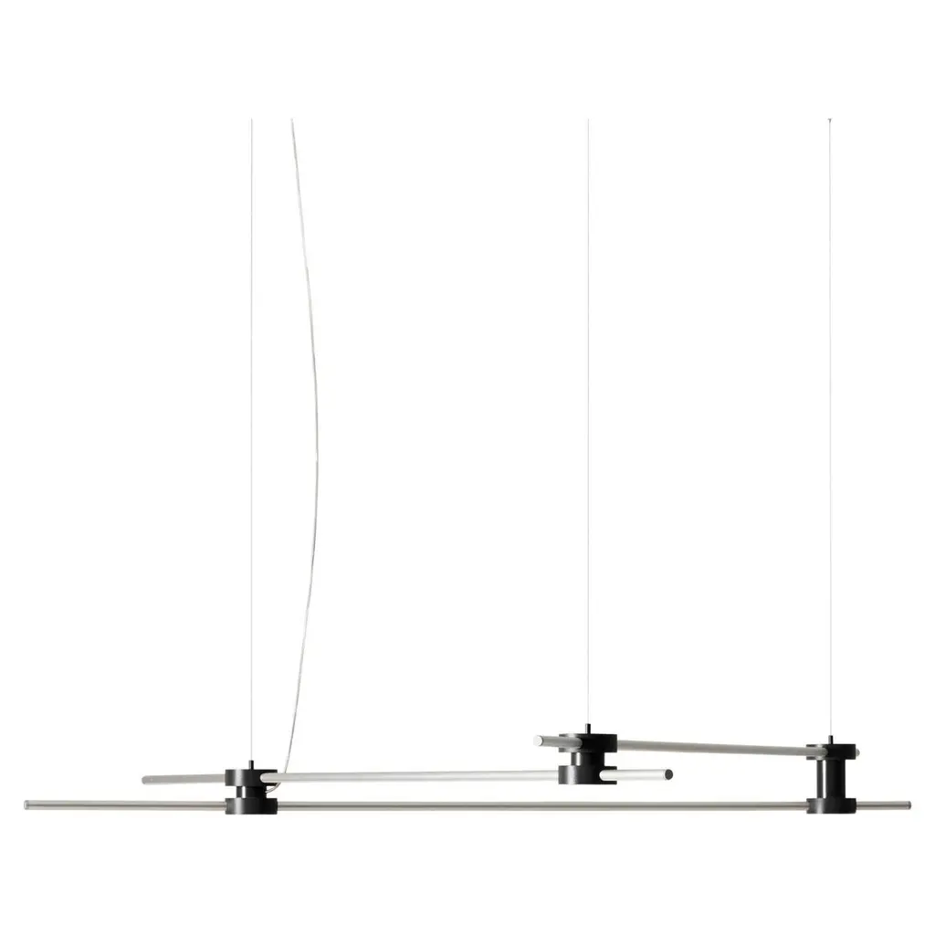 Tobia Scarpa Eitie Line Lamp For CassinaA pendant light designed by Tobia Scarpa, that takes shape as a seemingly simple structure with sophisticated, innovative technology, available in two lengths.The pendant lamp is composed of a luminous line that can be rotated 360 degrees to adjust its position and the brightness of the light.MATERIALSPietra Serena, aluminium, brass.A family of eye-catching lamps, inspired by a wall installation designed by Tobia Scarpa, that emerges from a seemingly simple structure and sophisticated, innovative technology. The concept for Eitie, a palindrome in tribute to Scarpa’s age and his extensive experience in the world of design, elaborates upon the idea of a luminous line that, thanks to unique circular connectors, is expressed in various configurations. Starting with the original work, part of the Benetton Foundation Research Centre, Cassina has revisited the distinctive wall-mounted lighting system to produce a pendant light, a table lamp and a floor lamp that form a visually exciting collection. Each element is composed of two or three luminous lines that can be joined to form various compositions, thanks to circular black metal connectors embellished with silver details that contain cutting-edge technology hidden in their interior. The joints of the table and floor lamps can be opened 30 degrees, to the right or left, to create different visual effects, while the triangular wall-mounted version is stationary. Each luminous line can be rotated 360 degrees to adjust its position and the brightness of the light.This lamp is wired for Europe, if used in US or any other country the client will need to convert it.Important information regarding images of products:Please note that some of the images show other colors and variations of the model, these images are only to present interior design proposals. The item that is selling is on the first image.Important information regarding color(s) of products:Actual colors may vary. This is due to the fact that every computer monitor, laptop, tablet and phone screen has a different capability to display colors and that everyone sees these colors differently. We try to edit our photos to show all of our products as life-like as possible, but please understand the actual color may vary slightly from your monitorAbout the Designer:Architect and designer Tobia Scarpa graduated in 1969 at the University of Venice and in the same year won a “Compasso d’Oro” prize for his “Soriana” armchair designed for Cassina. He has since been awarded many other design prizes and many of his designs can also be found on show in some of the world’s key museums, including his ‘Libertà’ chair on show at the Louvre.As an architect he has worked for both public and private clients including the Benetton Group for whom he famously designed the industrial area and production plants in Castrette di Villorba (Treviso). Even today, the Benetton facilities are still held up as an example of aesthetic-functional excellence, one of the world’s most exciting pieces of industrial architecture.About The Manufacture: Established in 1927 by Cesare and Umberto Cassina in Meda, Italy, Cassina launched industrial design in Italy in the 1950s, based on a totally innovative approach that marked the transition from artisan production to mass production. With a mindset focused on research and innovation, Cassina combines technology and long-standing artisan craftsmanship. Memory, research, innovation. Cassina blends traditional skills and superior productivity, meticulous attention to detail and passion, uniqueness and experimentation, wellbeing and sustainability. Today, the company continues to address new lifestyles with the creation of complete, harmonious interior decor solutions that embody the best contemporary design for all areas of the home.