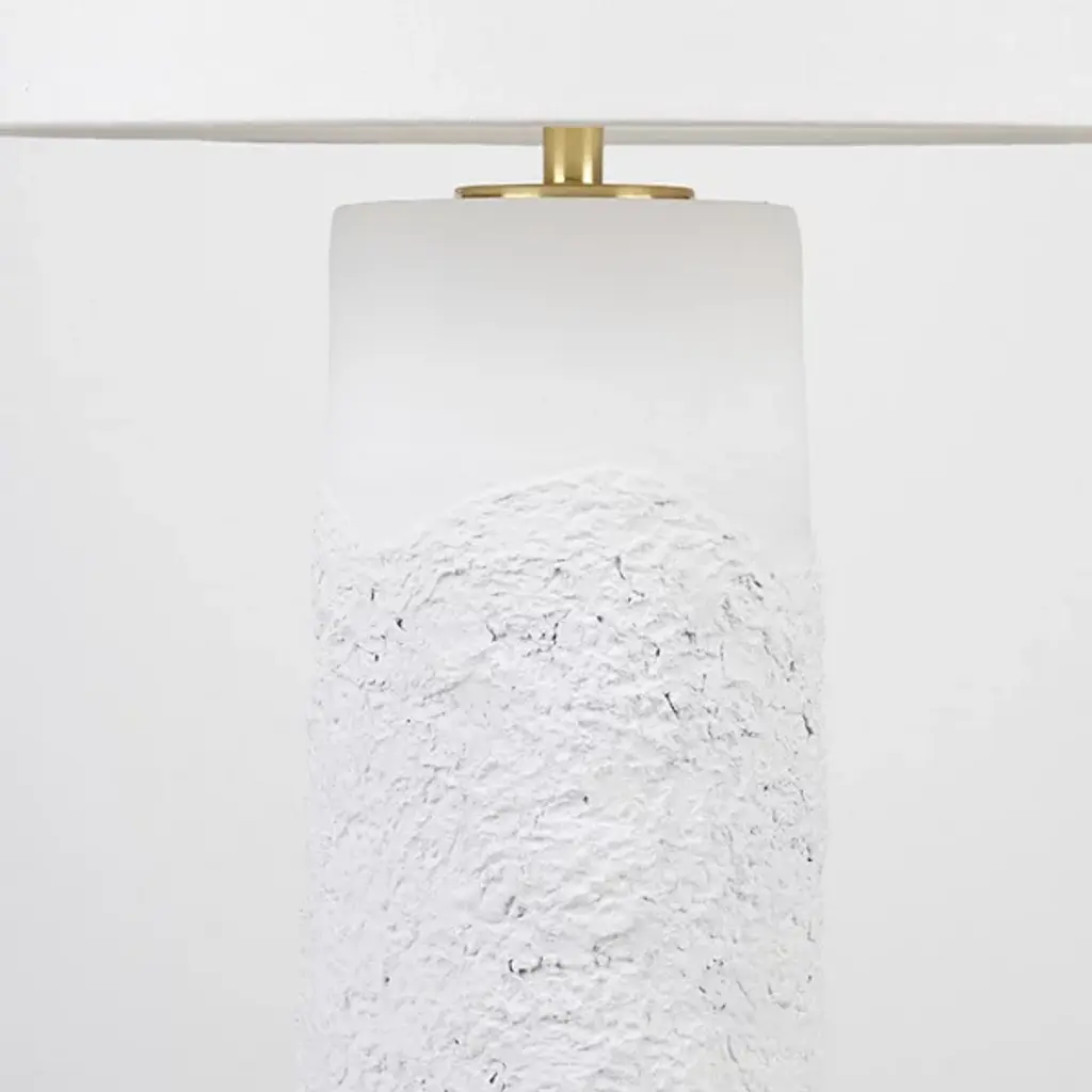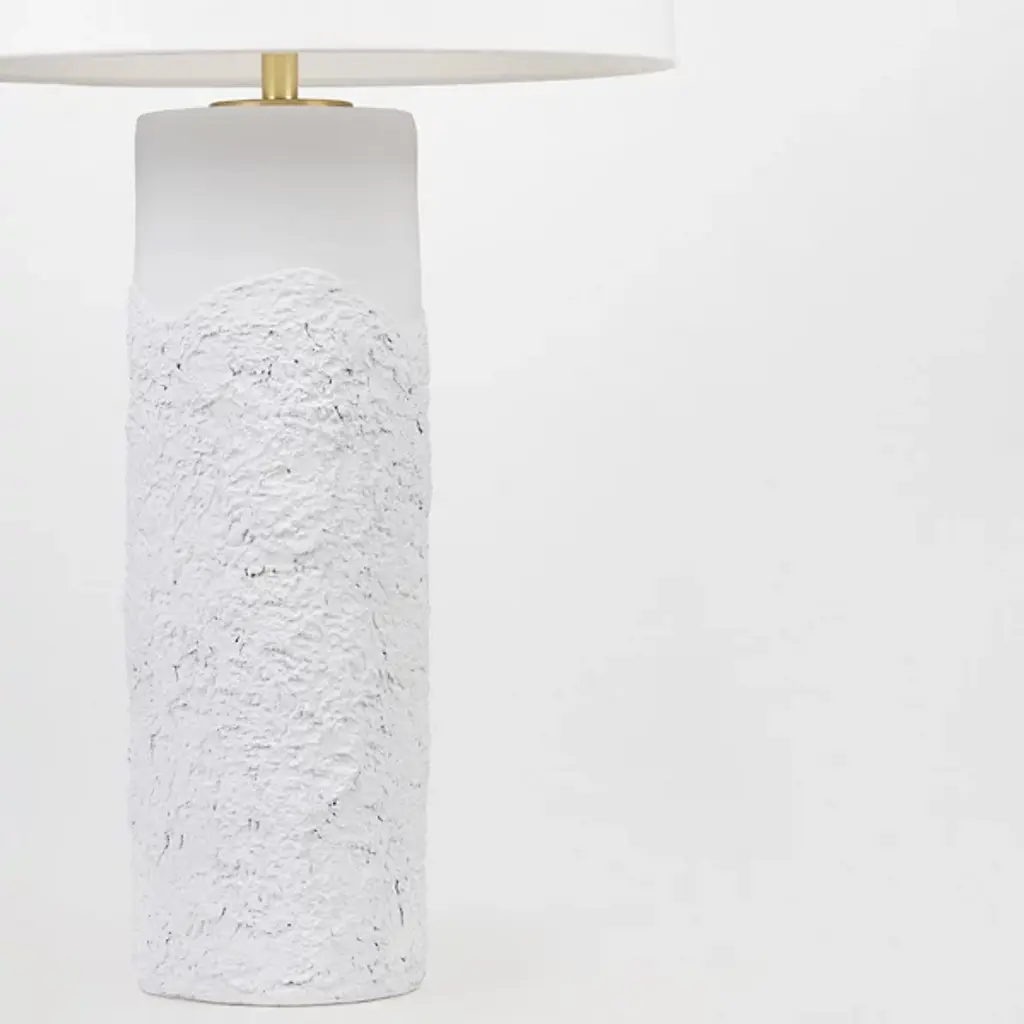 The Tolland Table Lamp from Hudson Valley Lighting is a captivating blend of transitional charm and understated elegance. Evoking the allure of a found artifact, Tolland boasts a raw and earthy aesthetic. Its ceramic base exudes a natural quality, featuring subtle details that add character to the piece. Glimmering metalwork accents adorn the lamp, providing a touch of refinement. It is topped with a crisp linen shade illuminated by an LED.