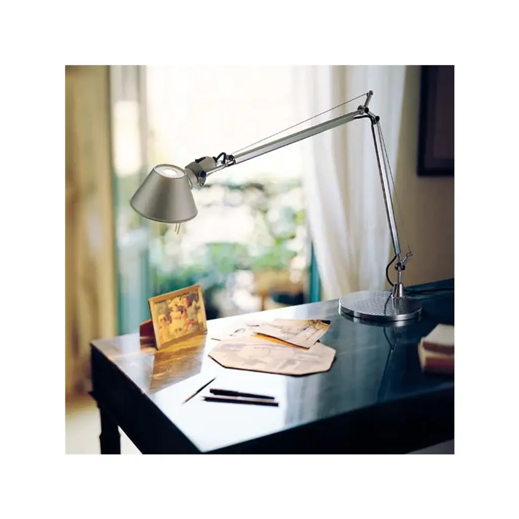 Artemide’s Tolomeo Mini table lamp is a renowned classic of Italian design. The Tolomeo lamp features an aluminum structure with conical shade, and the characteristic spring system allows the light to be adjusted to any direction. The lightweight Tolomeo collection by Michele De Lucchi and Giancarlo Fassina received the famous Compasso d'Oro award in 1989. It was credited with having achieved the perfect balance between design and engineering. Due to their adaptable and timeless design, Tolomeo lamps are equally well suited for homes, offices and public spaces.