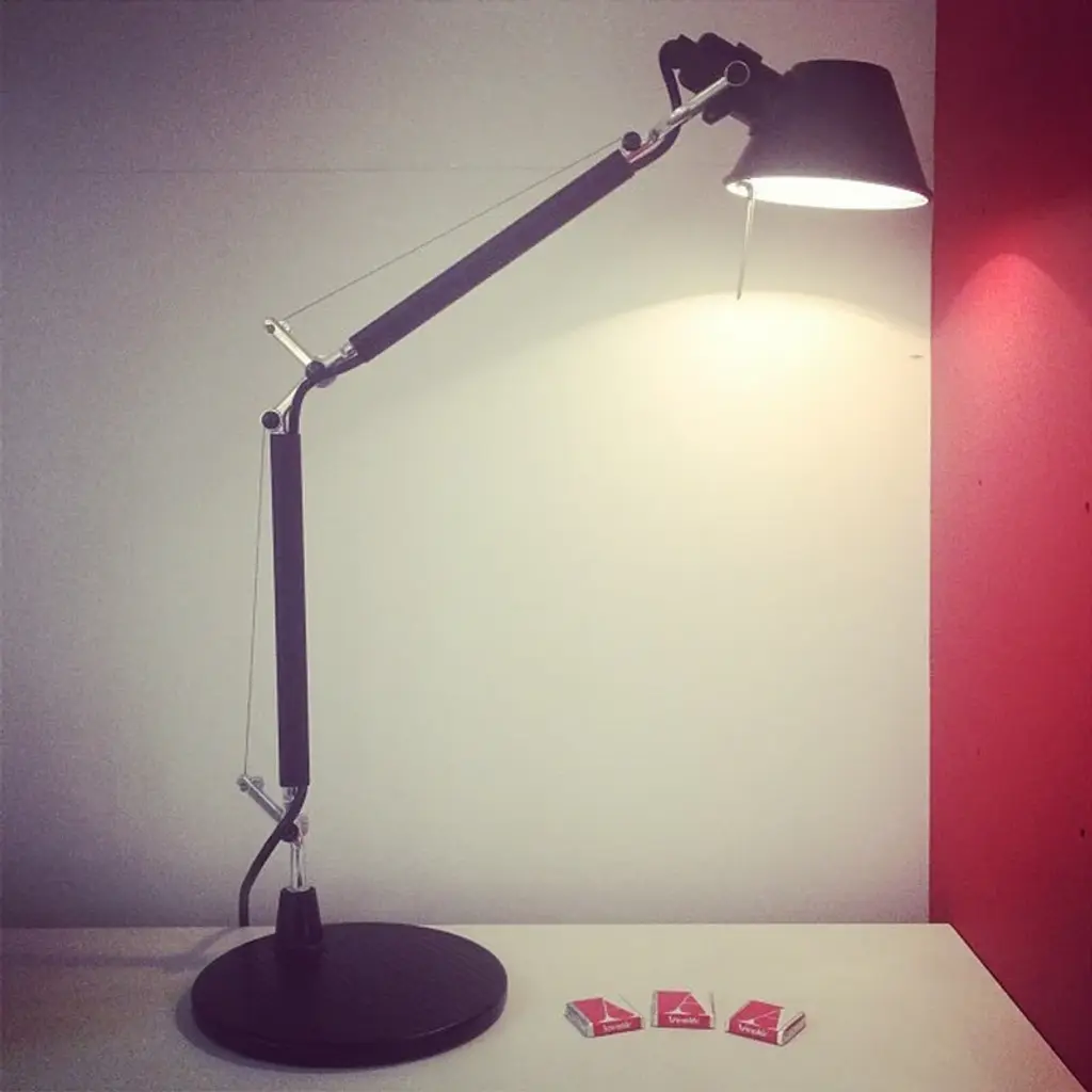 Table standing luminaires for adjustable, direct task, LED, fluorescent, halogen or Standard Bulb lighting. Features
