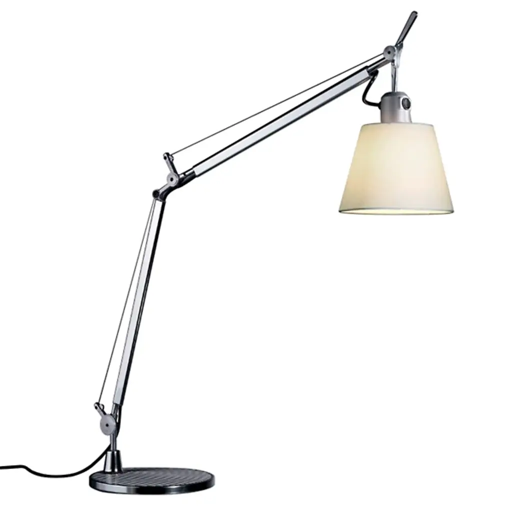 The Artemide Tolomeo with Shade Table Lamp combines the look of the traditional lamp shade with the modern technology of fully adjustable, bright task lighting. Designed by Michele De Lucchi and Giancarlo Fassina, the Tolomeo design received the Compasso d'Oro award in 1989 for Italian Industrial Design.