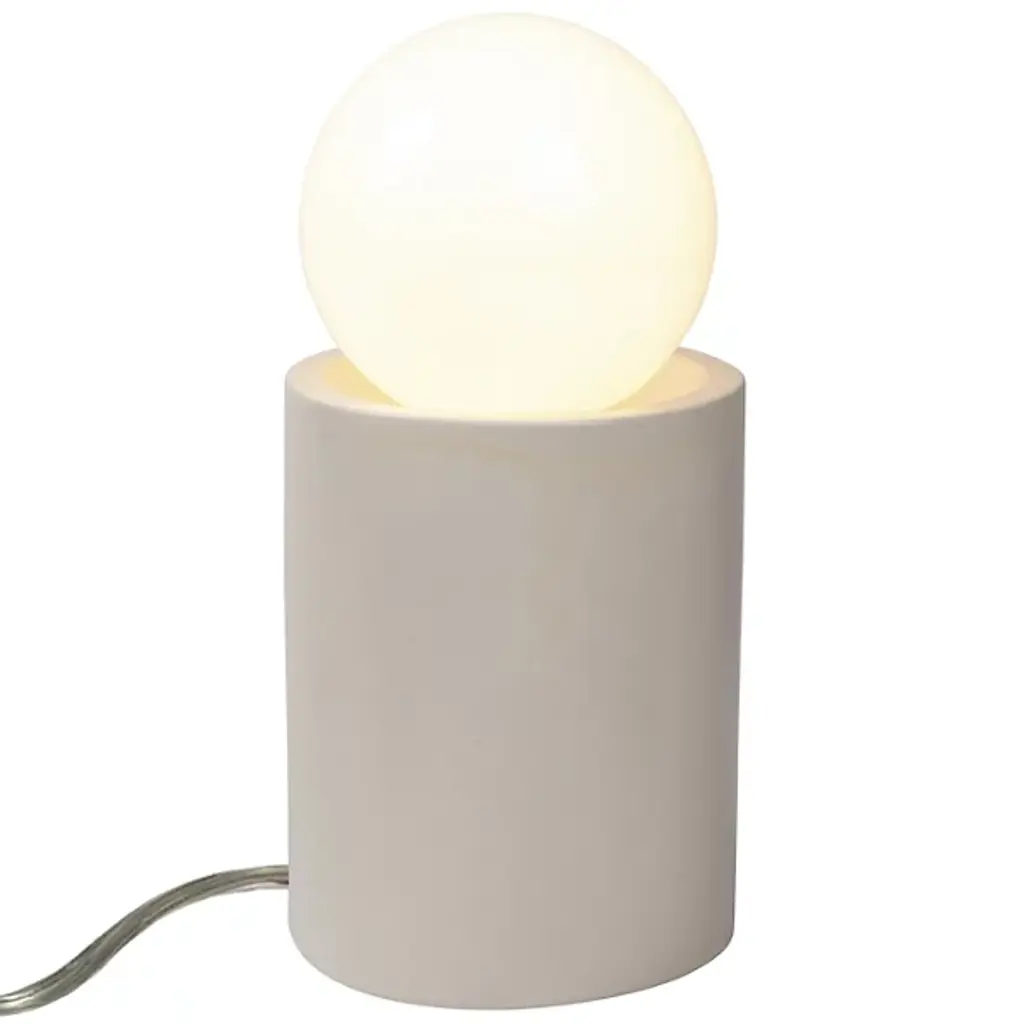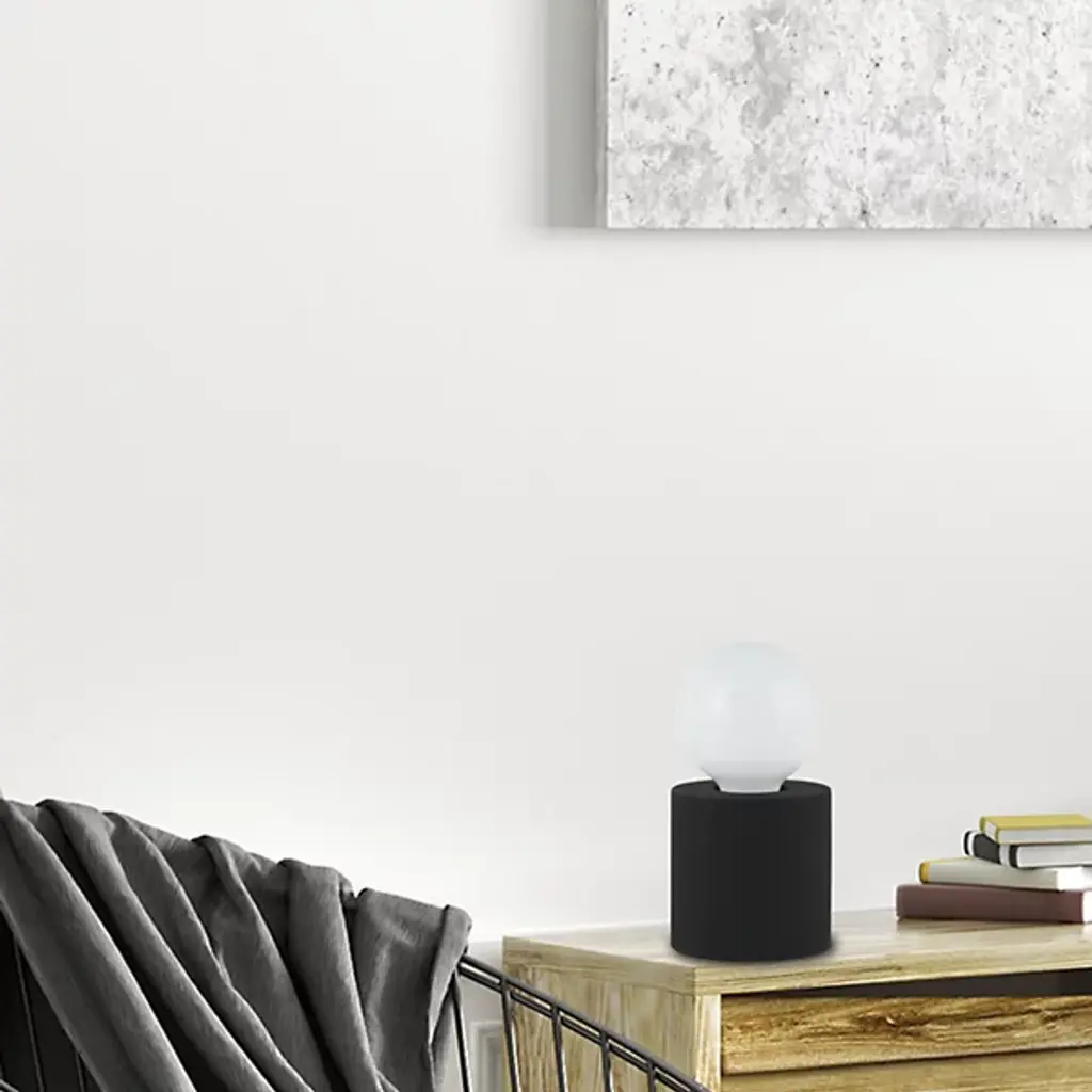As minimalist a table lamp as you could ever want. The Tonya Table Lamp by Dainolite is essentially a large, industrial light socket made of concrete. The petite cylinder puts your chosen medium base light bulb (not included) on display and lets it shine unimpeded all around a room. Once in place on a side table or desktop, this small table lamp is easily turned on and off via an in-line rocker switch.