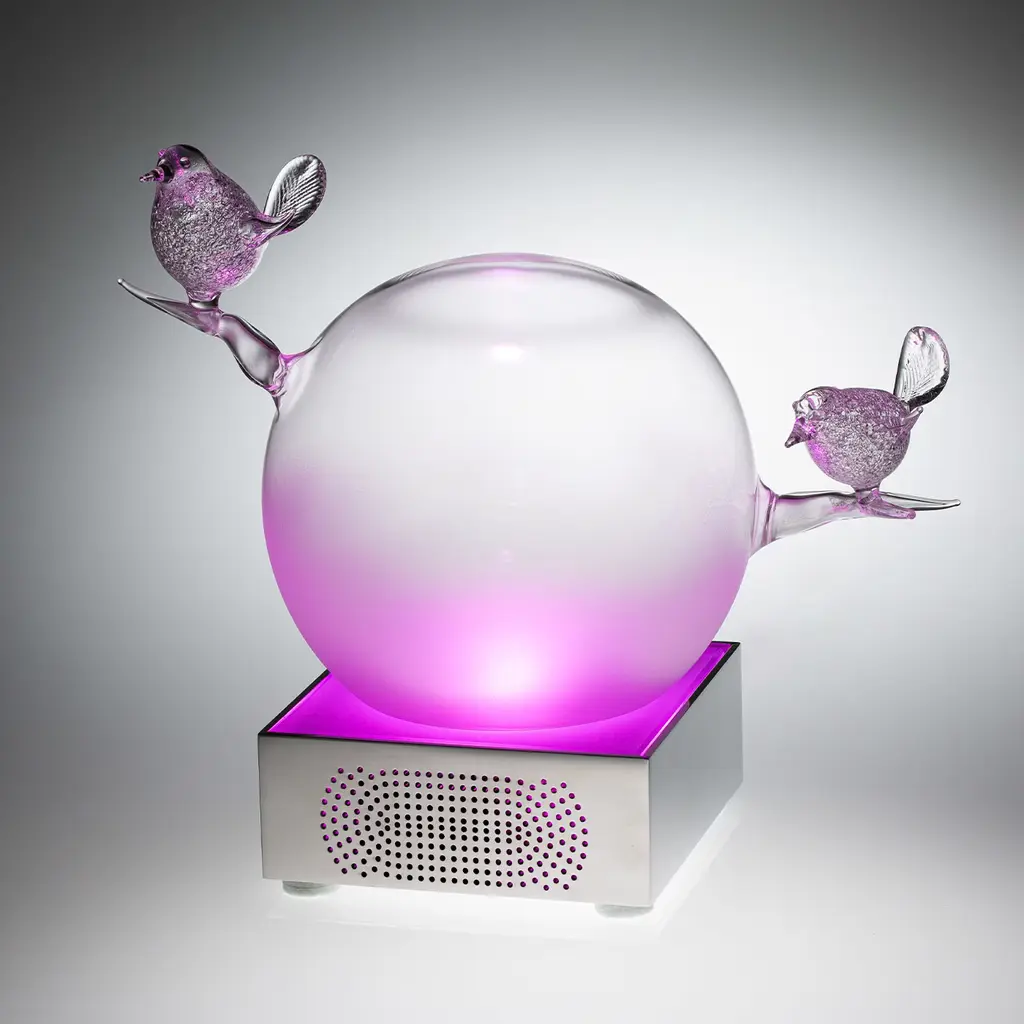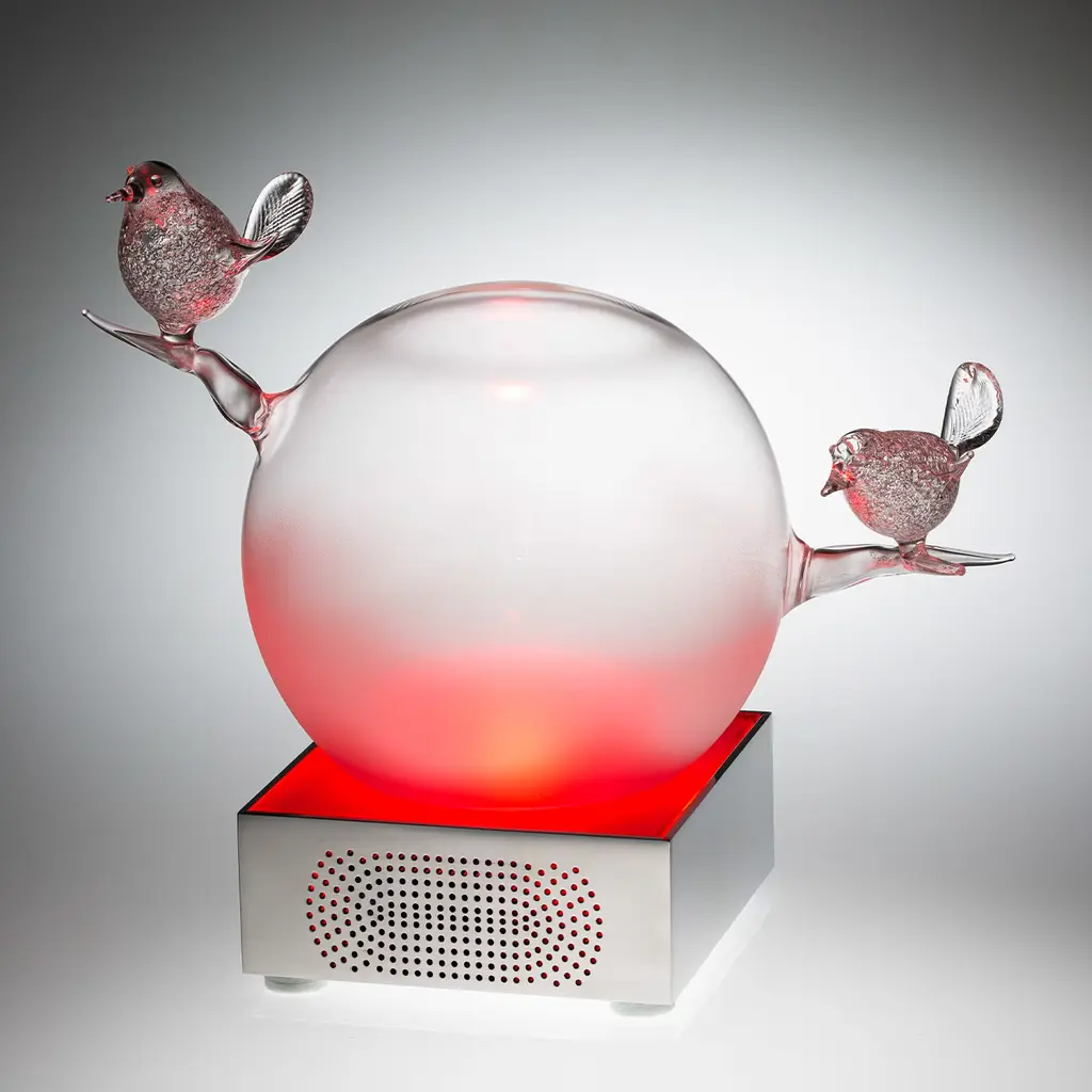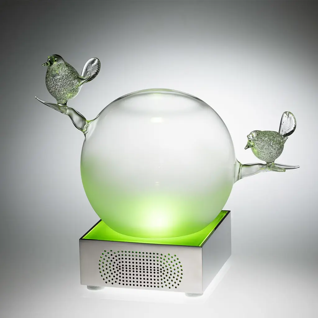Tornasole is a lamp that combines the art of free-hand blown glass, Casarialto’s signature, with sophisticated technology. The device integrated into the lamp is responsible for monitoring the quality of air in the environment, through a laser and bio-sensors. Tornasole is reminiscent of a poetic mini observatory that changes shades of color to warn us when to ventilate the space we live in, increasing awareness about our surroundings. Please, contact the Concierge for further information.