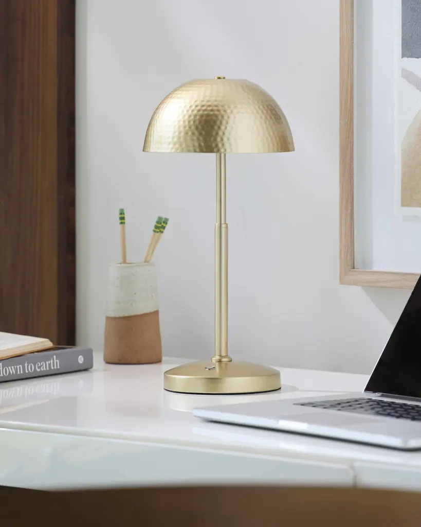 Collection: Tornavacas Colors: Gold, White Material: Body: Iron / Base: Iron / Shade (Outside): Metal / Shade (Inside): Metal Styles: Traditional Made In: China Lighting Type: Accent Table Lighting Base: Iron Base Color: Gold Shade Material: Metal, Metal Shade Color: White, Gold Cord Length: 0' Switch Type: 3-Way Number of Bulbs: 1 Socket Type: LED Bulb Wattage: 7W