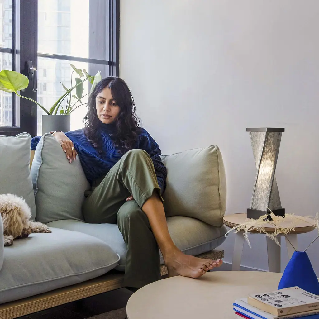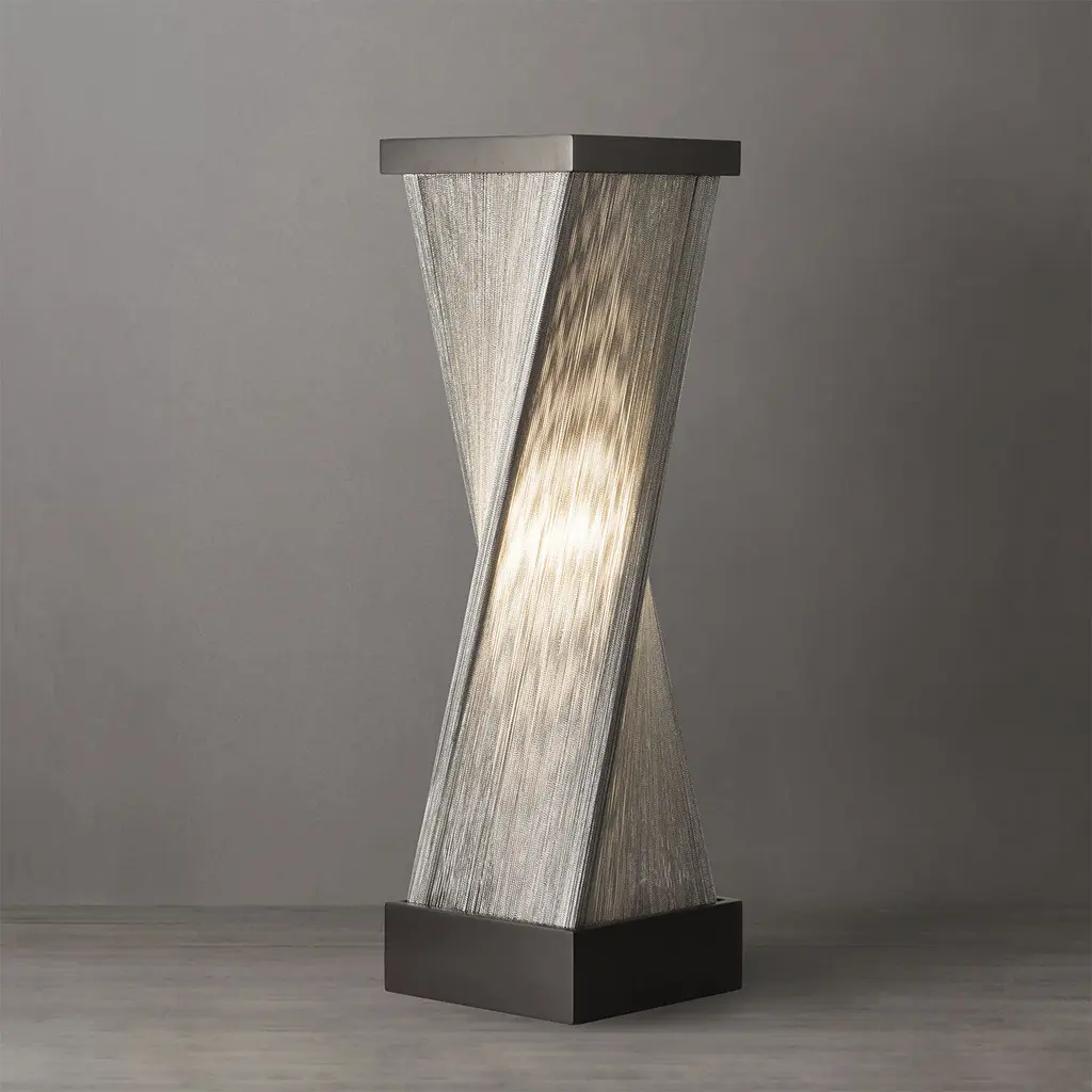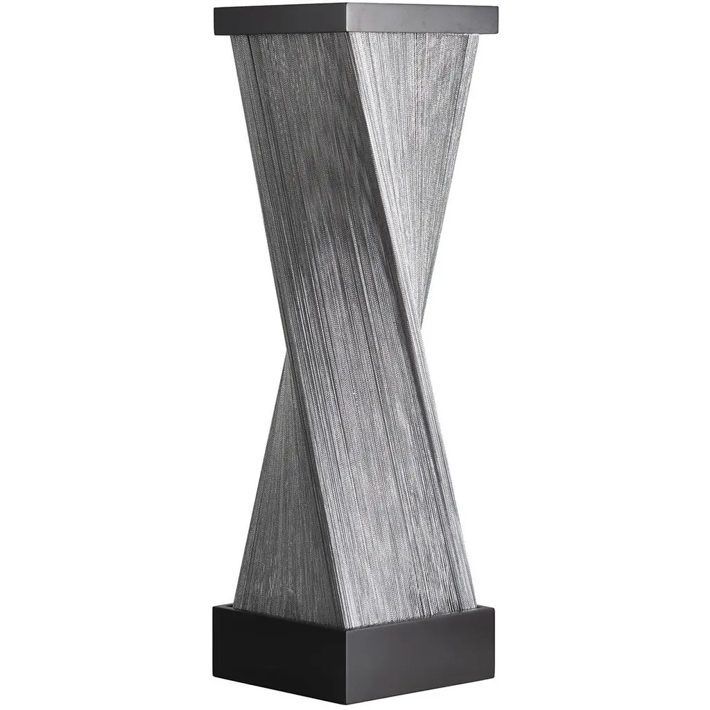 The Torque Table Lamp is both accent lighting and functional sculpture. The shape of the lamp is created by weaving delicate silver strings into a twisted, sculptural wooden shape. The silver string is illuminated from within by the 120 volt LED bulb. When turned off, the Torque Accent Table lamp is a stately, sculptural conversation piece. This contemporary lamp works best on nightstands or in living spaces. When used in conjunction with a smart switch, Torque is compatible with Amazon Echo, Google Assistant, and Apple Home, and can be automatically turned on/off manually, by voice activation, or by scheduled settings.