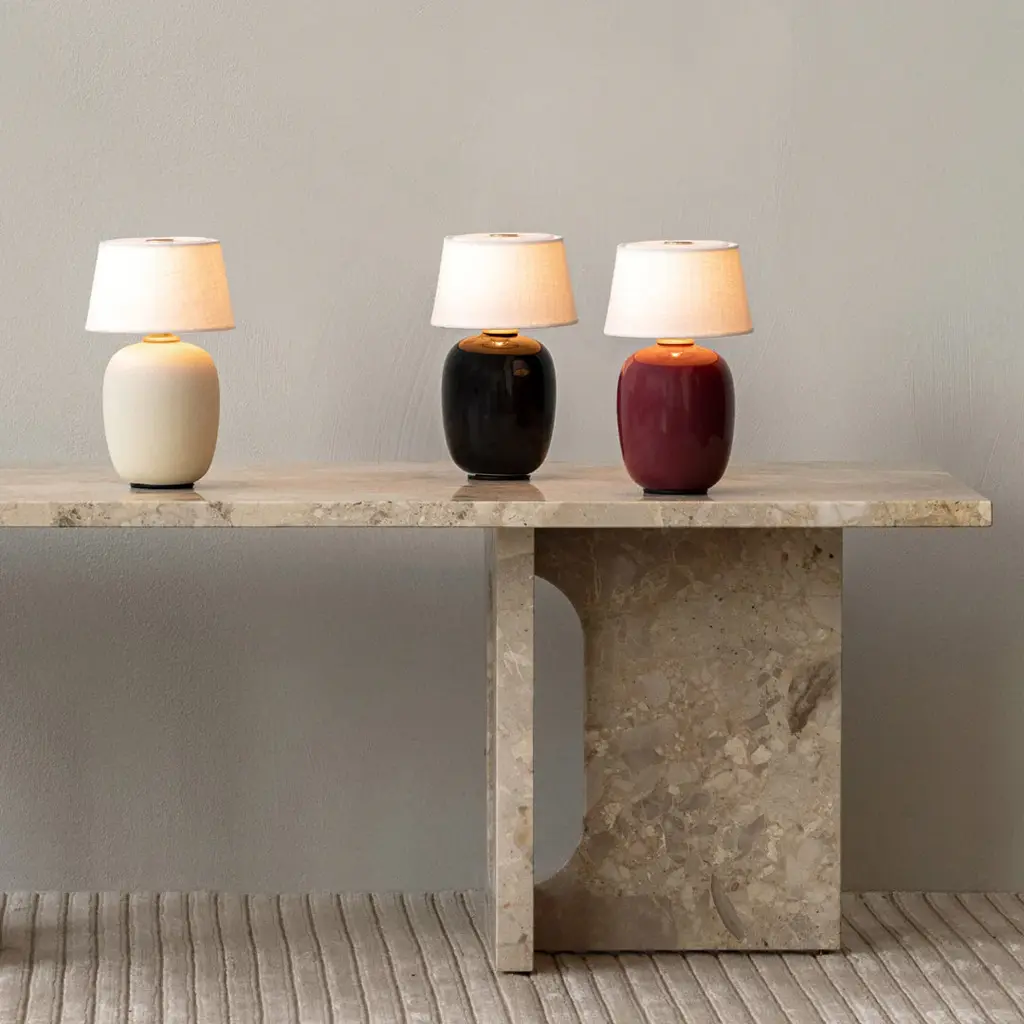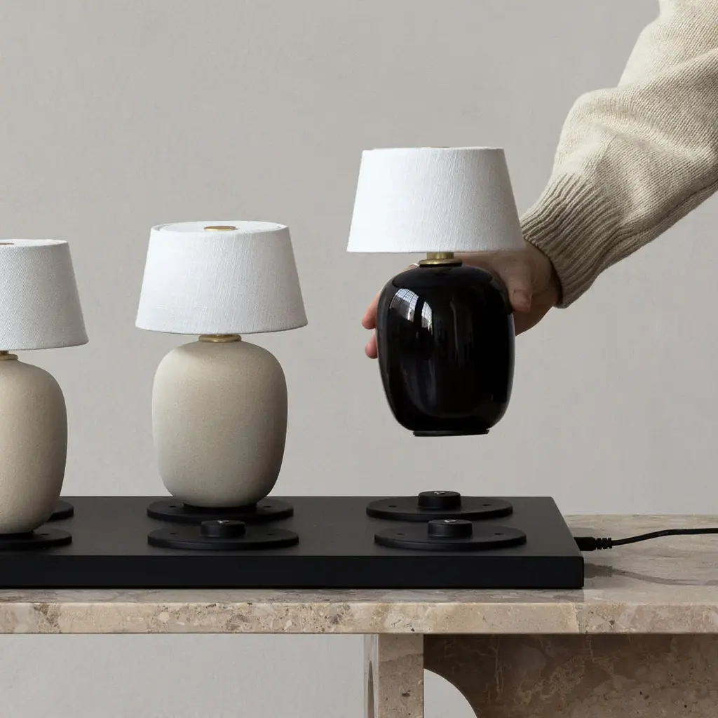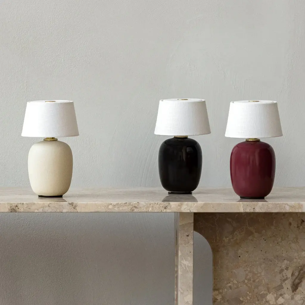 The new Torso Portable Table Lamp, designed for MENU by Kroyer-Saetter-Larsen, is a miniature version of their popular full-size design of the same name, which takes its design cues from childhood homes filled with objects shaped by the human hand. Petite and cozy, the diminutive design brings a sense of intimacy to tabletops, replacing the need for candles thanks to its soft, ambient light, adjustable to suit mood and requirement. At the tap of a finger, a brass button on the linen canvas shade effortlessly turns the light on and off, and a concealed USB charger at the base ensures easy charging – wherever it is used.