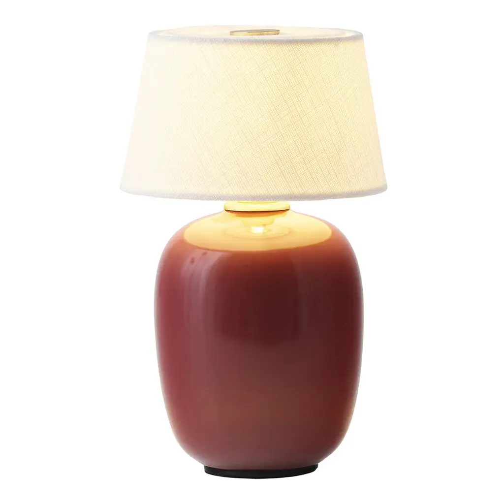 The new Torso Portable Table Lamp, designed for MENU by Kroyer-Saetter-Larsen, is a miniature version of their popular full-size design of the same name, which takes its design cues from childhood homes filled with objects shaped by the human hand. Petite and cozy, the diminutive design brings a sense of intimacy to tabletops, replacing the need for candles thanks to its soft, ambient light, adjustable to suit mood and requirement. At the tap of a finger, a brass button on the linen canvas shade effortlessly turns the light on and off, and a concealed USB charger at the base ensures easy charging – wherever it is used.