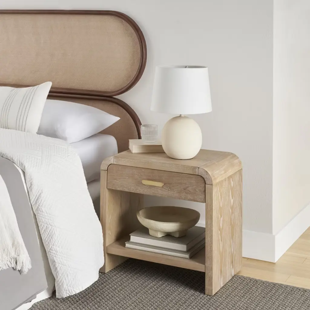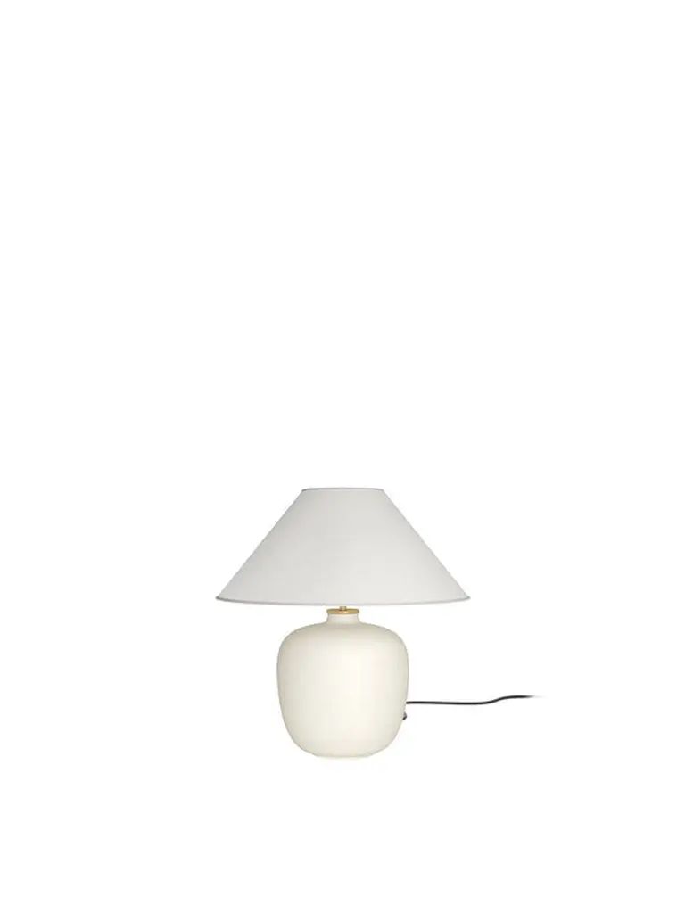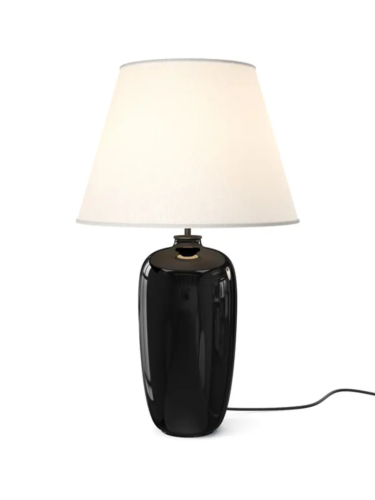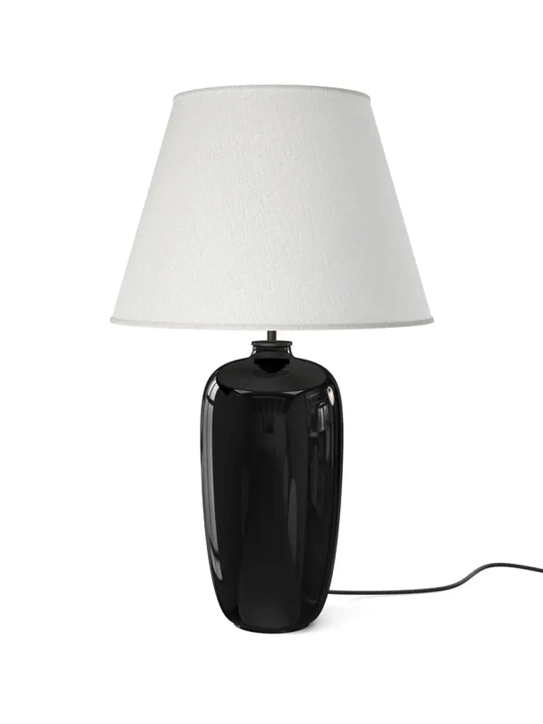 The contrasts between unglazed deep black glazed ceramics and airy linen come into play on the Torso Table Lamp, designed by Krøyer-Sætter-Larsen for MENU. Gently rounded for a soft expression, the understated sculptural base has a timeless feel that will feel instantly at home in any setting. The tactile shade diffuses the light to create instant ambience, and the brass touch dimmer allows for a personal setting.