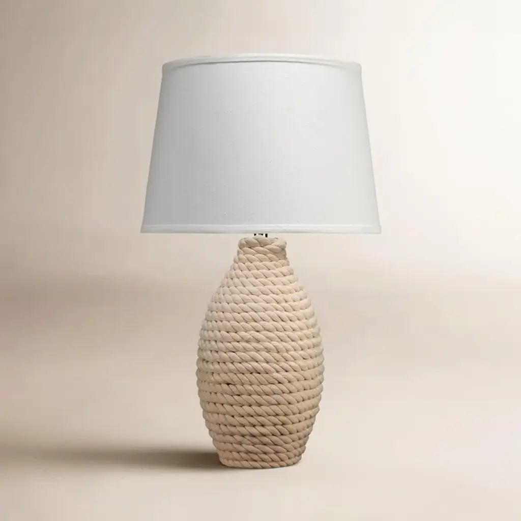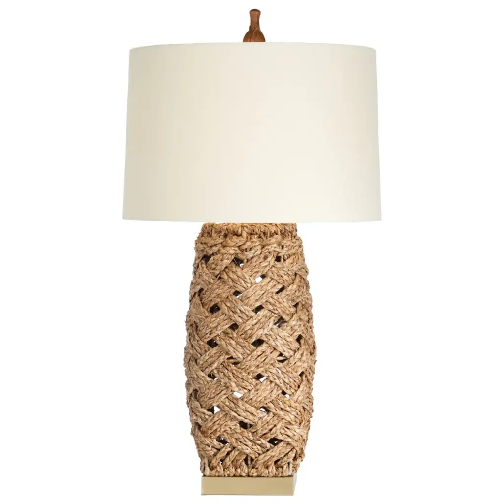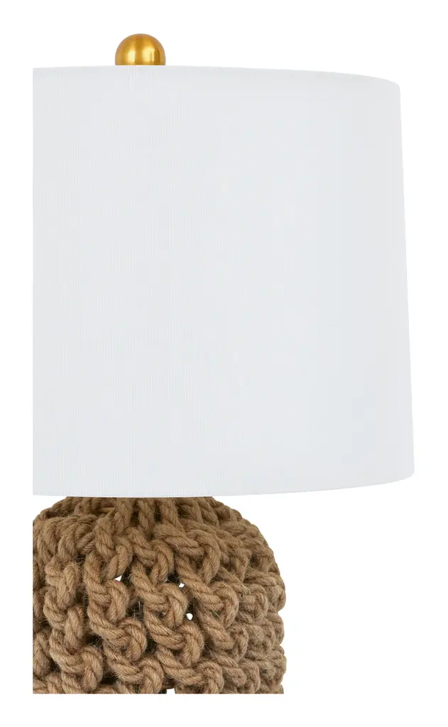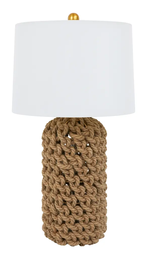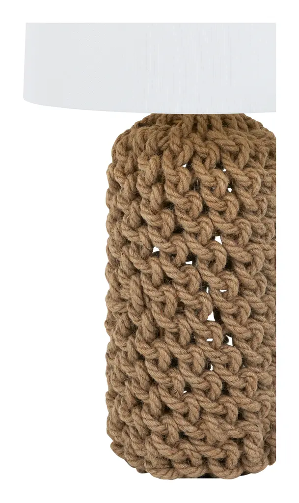 If you ask us, a little extra texture is always a good thing — so it’s no wonder that our nautical-inspired Tory Lamp has sailed to the top of our list of favorite lamps. This tactile table lamp features a simple, cylindrical silhouette crafted from woven natural rope to create an open, airy feel. It’s paired with a crisp white fabric shade and bright brass details, which add just the right amount of shiny contrast. Right at home in a cozy beach house, Tory would also make a great addition to the side table or nightstand in an organic-modern city space. •natural rope •white fabric tapered shade•3-way rotary switch •clear cord •requires 100W max/type A bulb dimensions •13" diameter x 24.5"H•base: 6.25" diameter x 14.5"H•shade: 13" diameter x 9.75"H