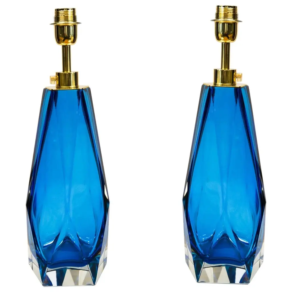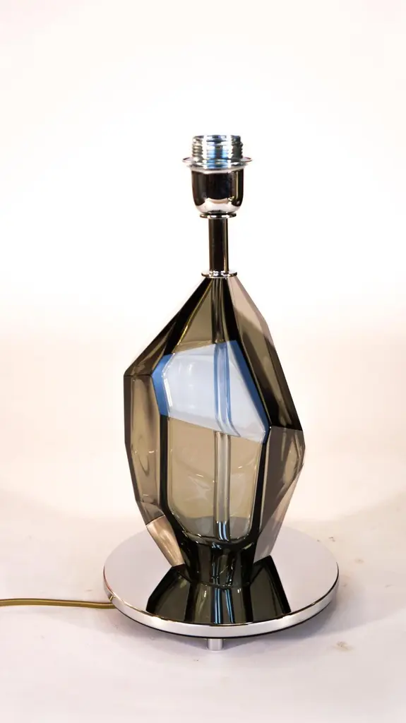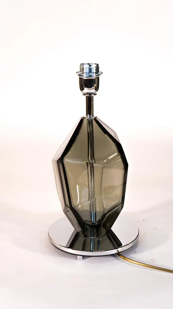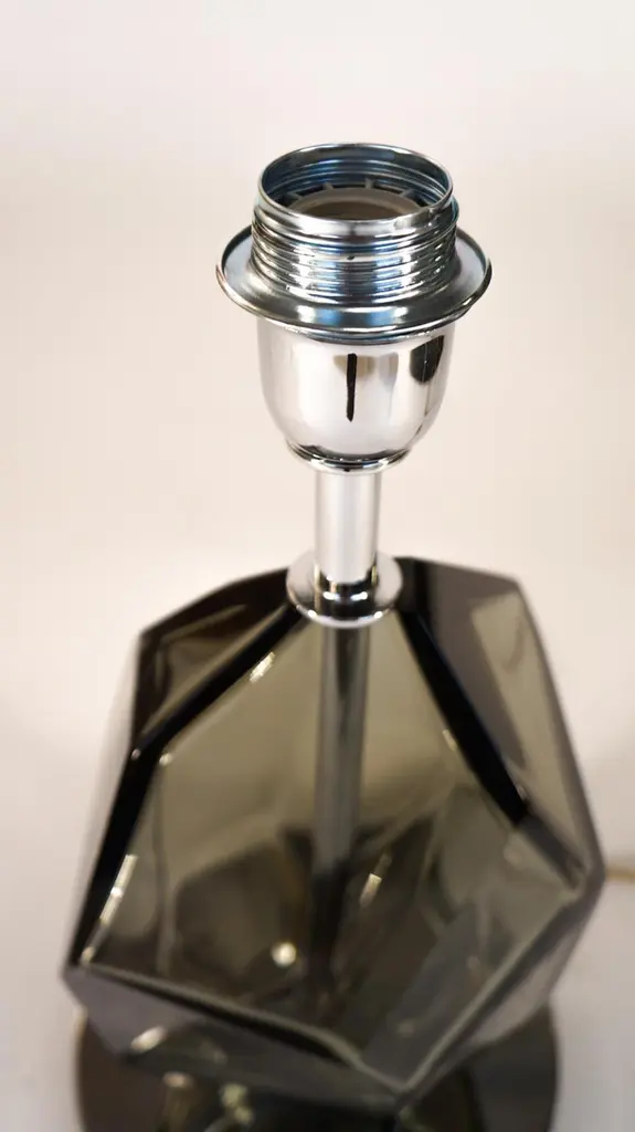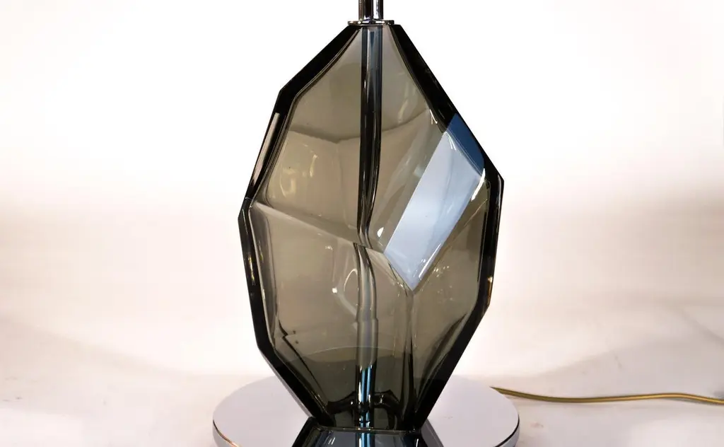 Compact and very solid table lamps, small but effective, the beauty of this is its faceted surface that create reflects and many shades of color.In the picture a pair of grey lamps, with the lamps bulb socket is included.The products are entirely handmade in style Mid-Century Modern.Toso Murano project in 1991Signature on the base by Toso Murano.The price of the item includes professional and tailored packing.The measurement of the glass is cm 26 (inches 10.23).We can professionally rewire this item according to your country's specifications.Complexity is the hallmark of Murano glass lamps. The sheer beauty it radiates in any room in marvel-worthy.