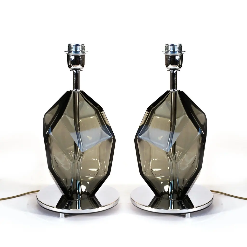Toso Murano Pair Of Grey Italian Venetian Glass Table Lamps Faceted, 1991