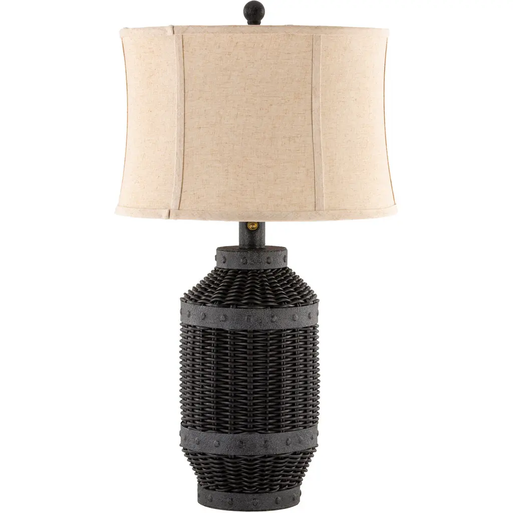 Totem #3 Modern Black Jesmonite Plastered Terracotta Raffia & Brass Table Lamp