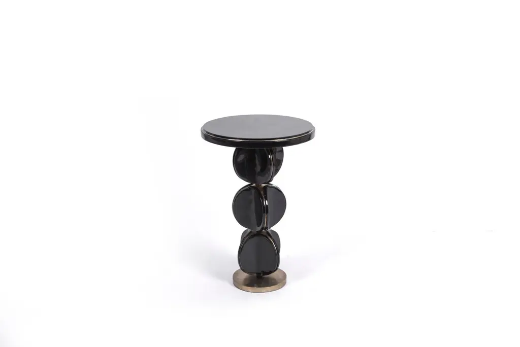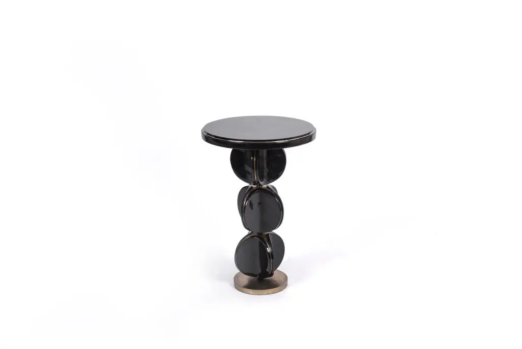 Totem Side Table In Black Shell & Bronze-Patina Brass By Kifu, Paris